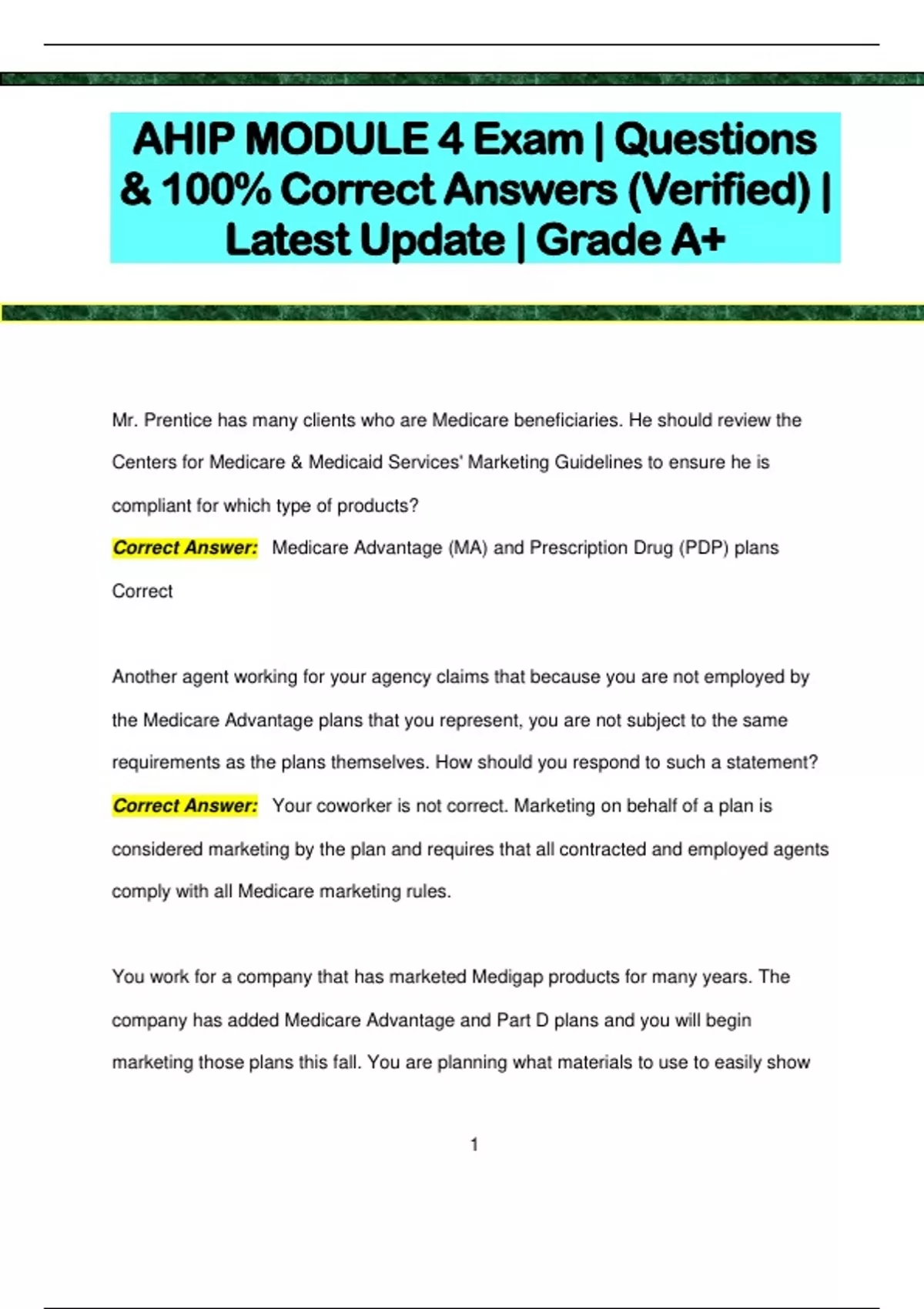 AHIP MODULE 4 Exam | Questions & 100% Correct Answers (Verified) | Latest Update | Grade A+