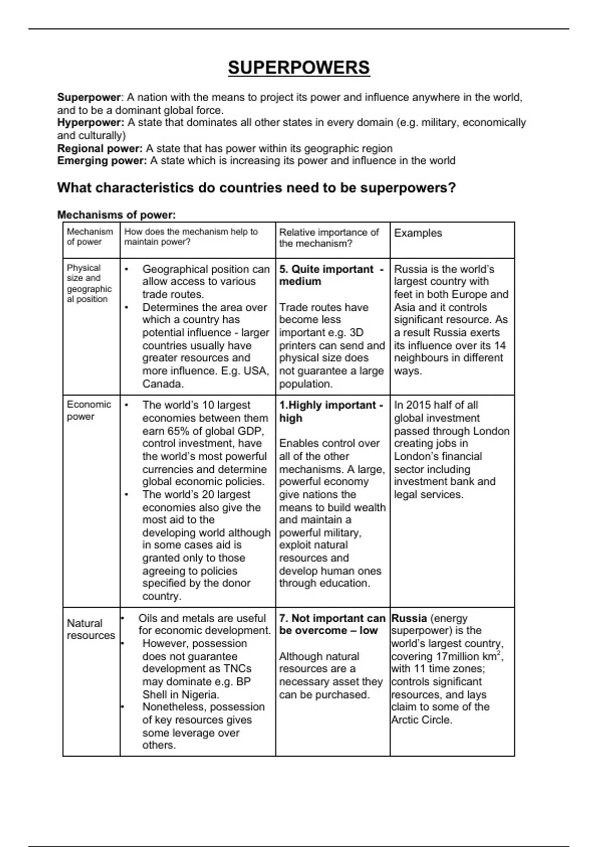 Superpower: A nation with the means to project its power and influence anywhere in the world,