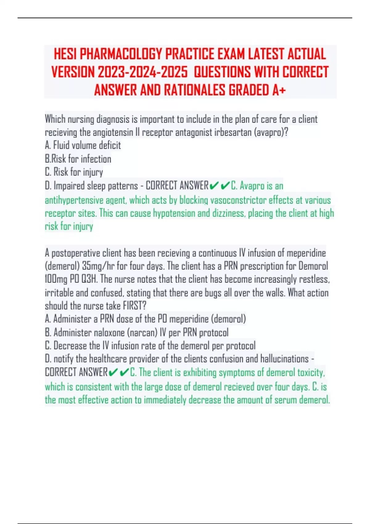 HESI PHARMACOLOGY PRACTICE EXAM LATEST ACTUAL VERSION QUESTIONS WITH CORRECT ANSWER AND RATIONALES GRADED A+
