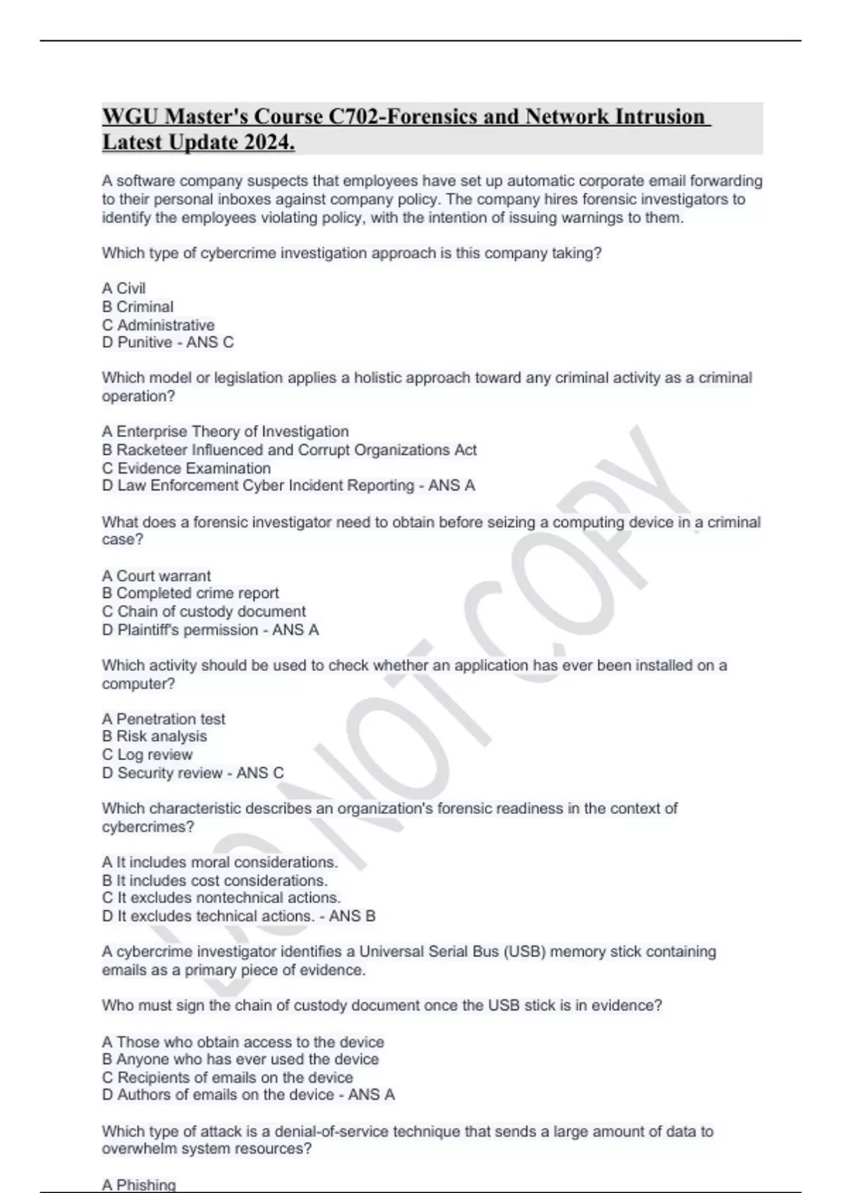 WGU Master's Course C702-Forensics and Network Intrusion Latest Update 2024..