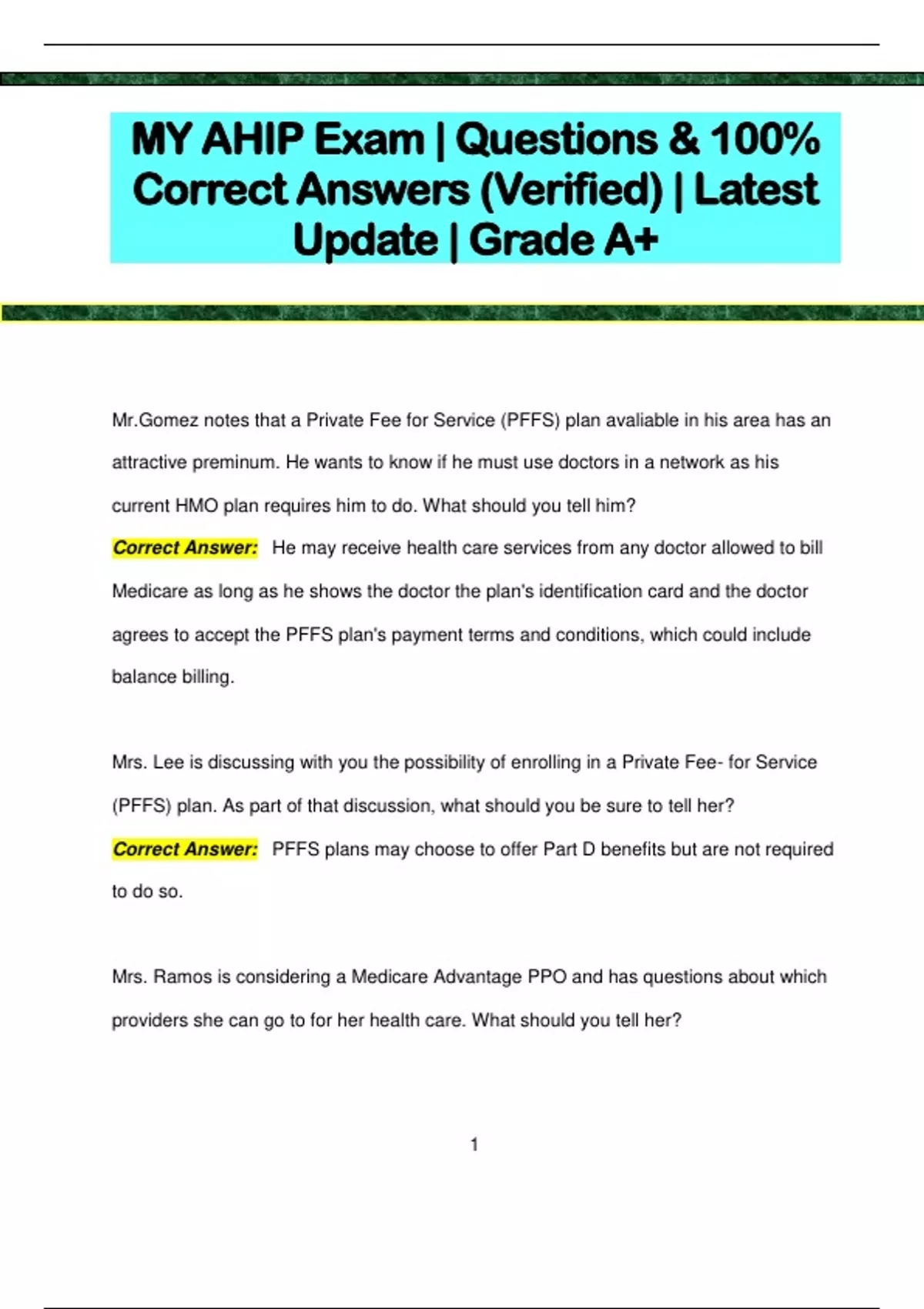 MY AHIP Exam | Questions & 100% Correct Answers (Verified) | Latest Update | Grade A+