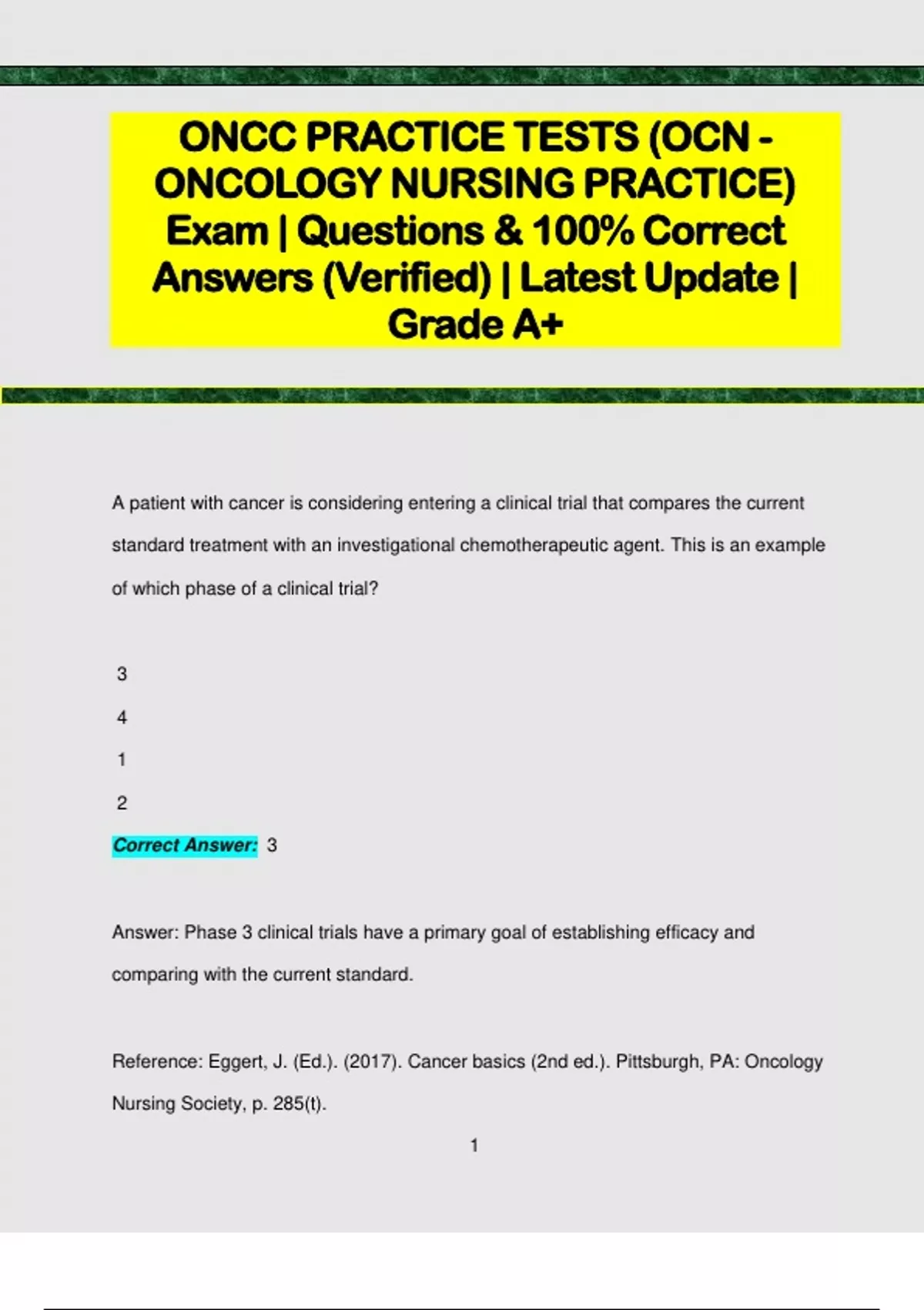 ONCC PRACTICE TESTS (OCN - ONCOLOGY NURSING PRACTICE) Exam | Questions & 100% Correct Answers (Verified) | Latest Update | Grade A+