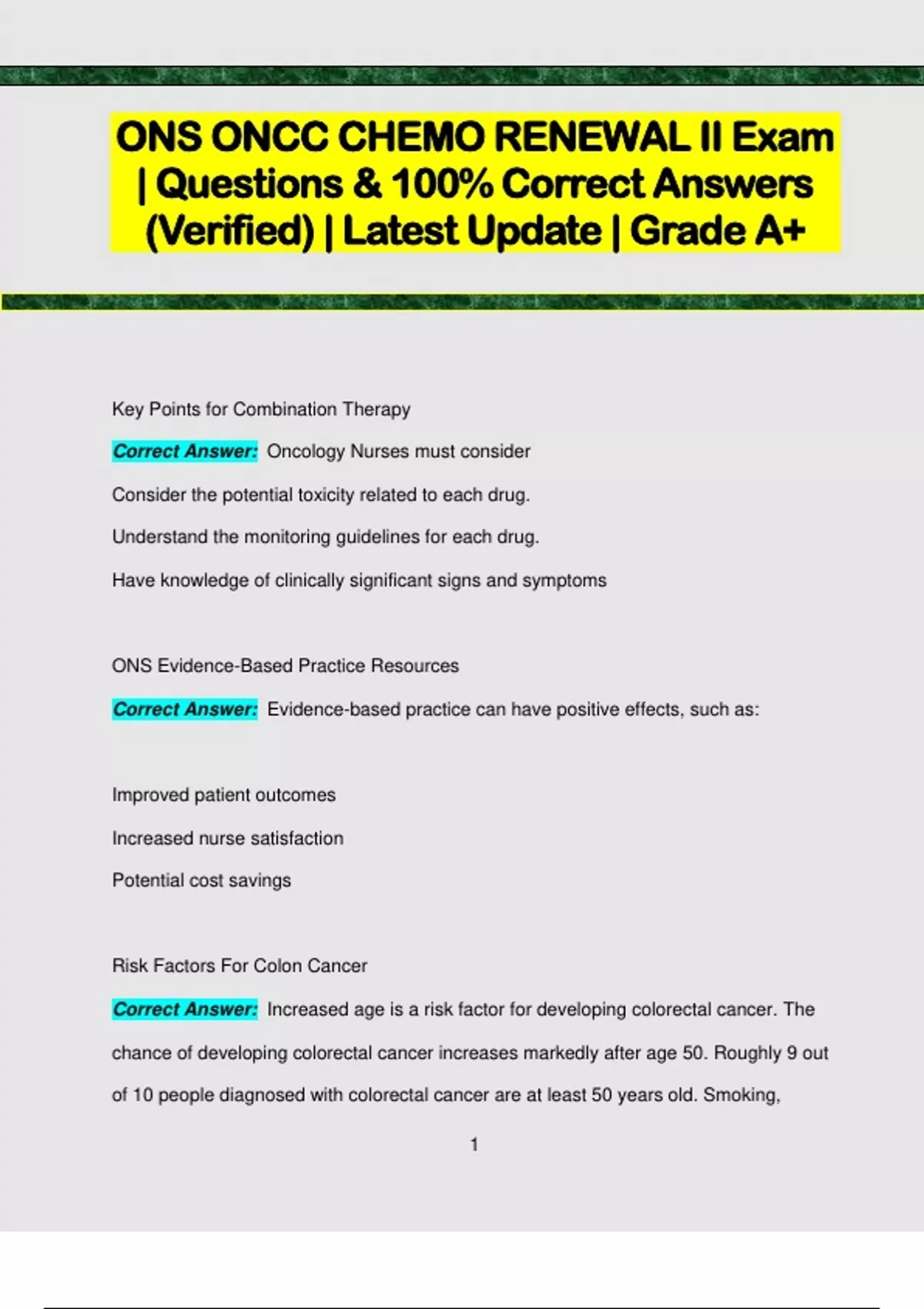 ONS ONCC CHEMO RENEWAL II Exam | Questions & 100% Correct Answers (Verified) | Latest Update | Grade A+