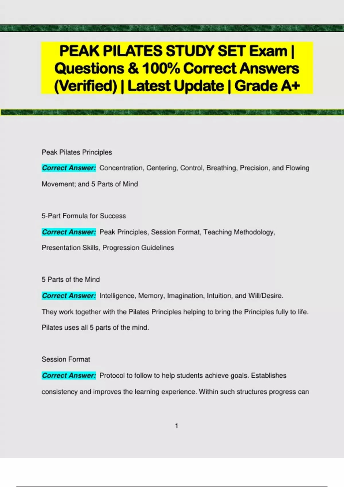 PEAK PILATES STUDY SET Exam | Questions & 100% Correct Answers (Verified) | Latest Update | Grade A+
