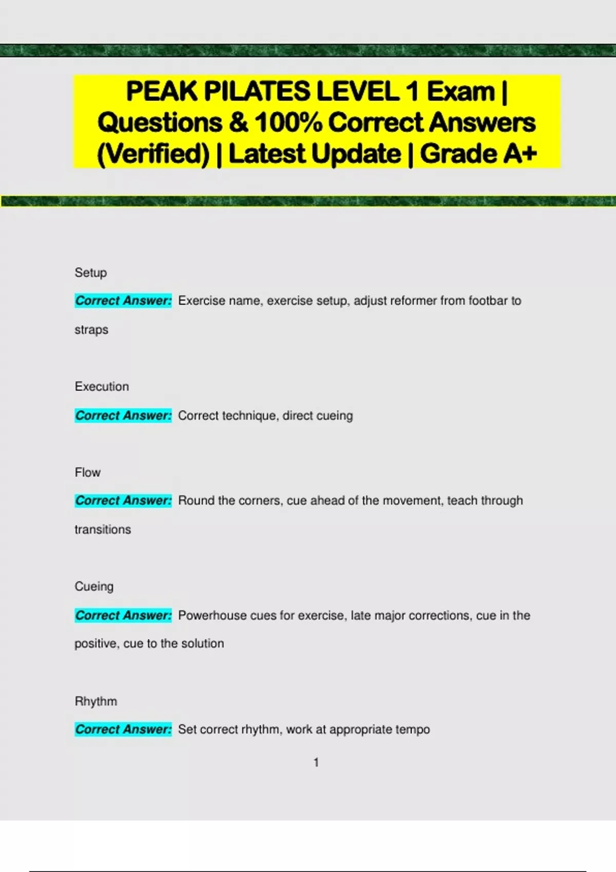 PEAK PILATES LEVEL 1 Exam | Questions & 100% Correct Answers (Verified) | Latest Update | Grade A+