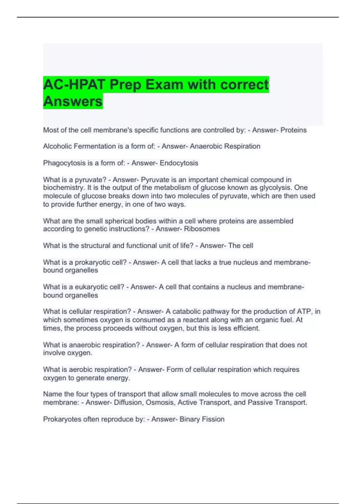 ac hpat prep exam with correct answers