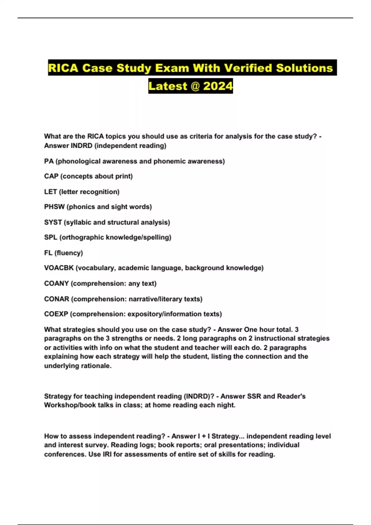 RICA Case Study Exam With Verified Solutions Latest @ 2024