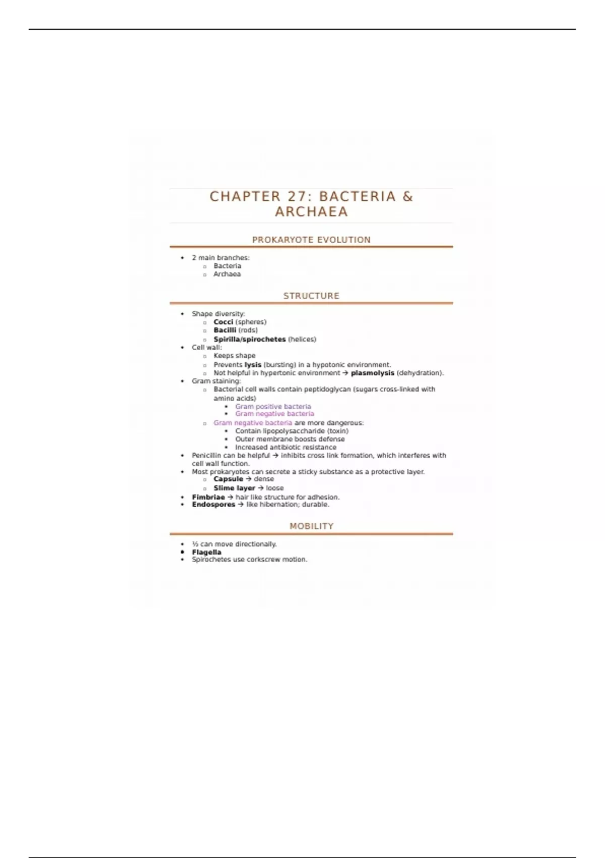 This is a comprehensive and detailed note for Bio 109; with emphasis on Chapter 27; Bacteria and Archaea You'll need it!!