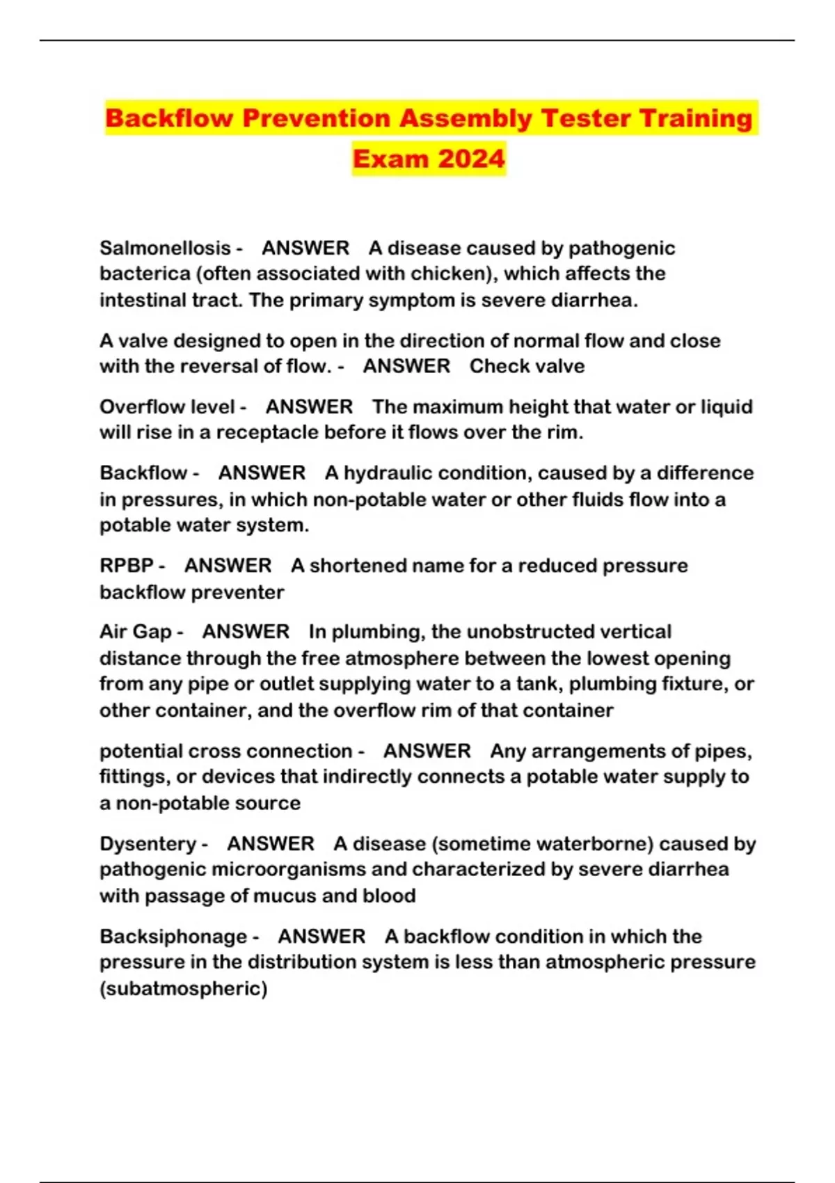 Backflow Prevention Assembly Tester Training Exam 2024...