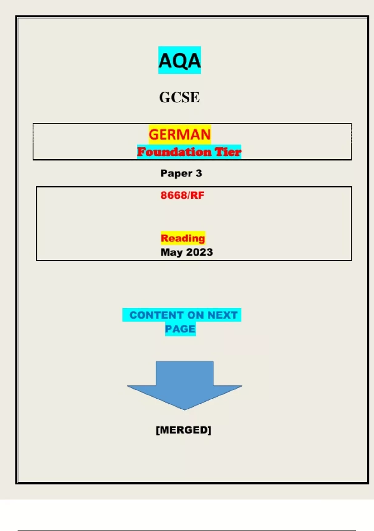 AQA GCSE GERMAN Foundation Tier Paper 3 8668/RF Reading