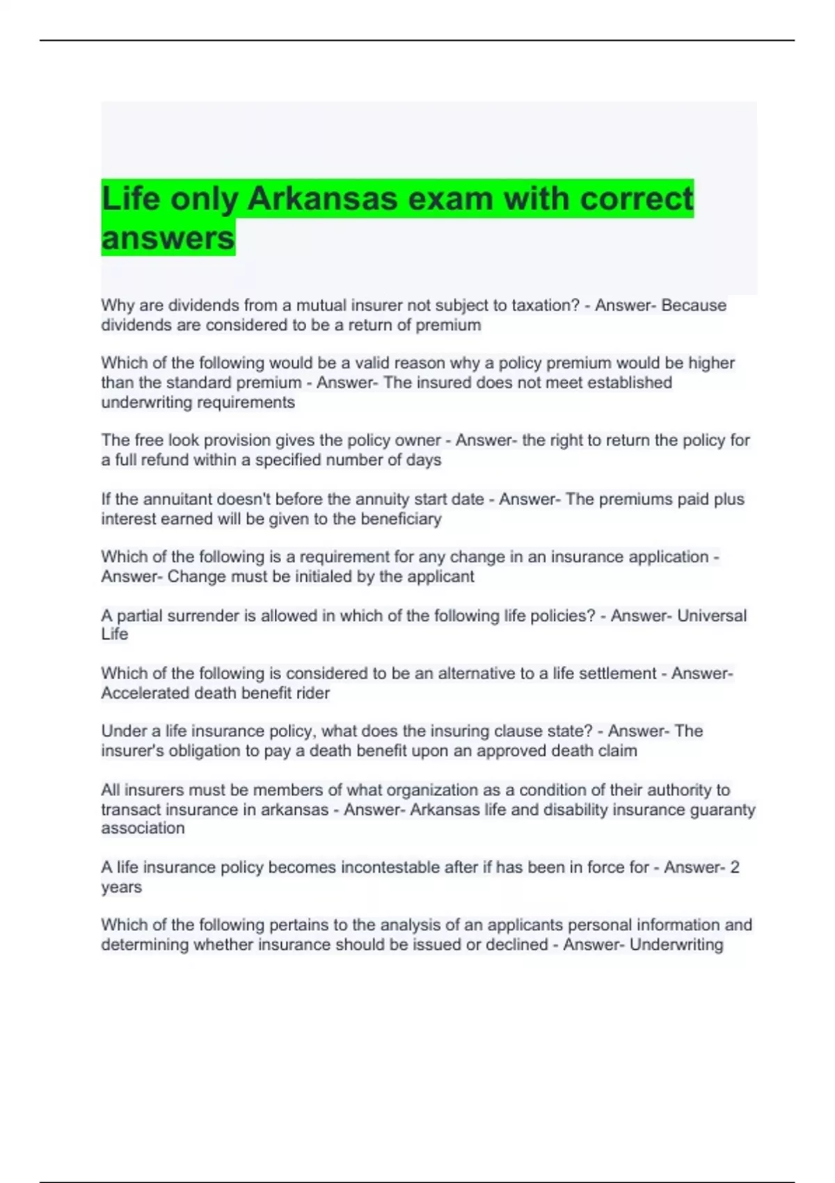 Life only Arkansas exam with correct answers