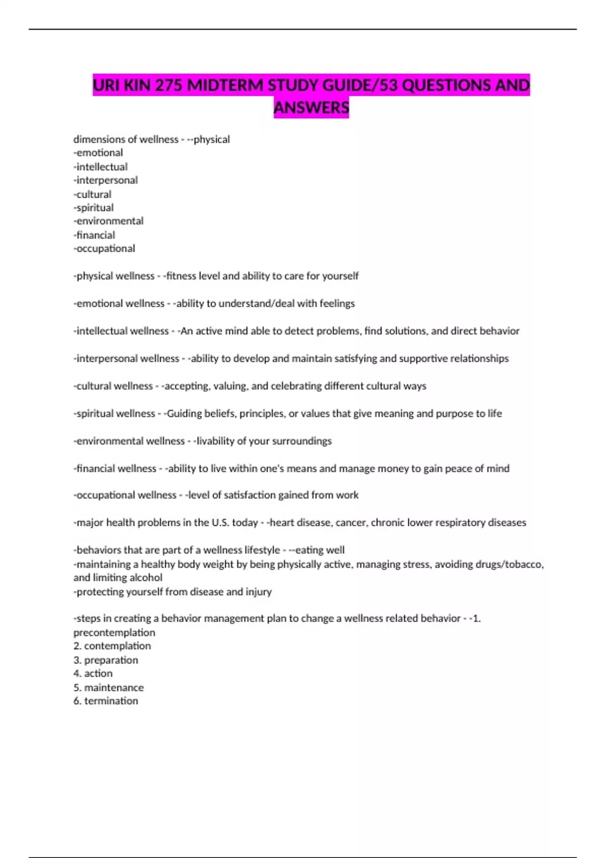 URI KIN 275 MIDTERM STUDY GUIDE/53 QUESTIONS AND ANSWERS