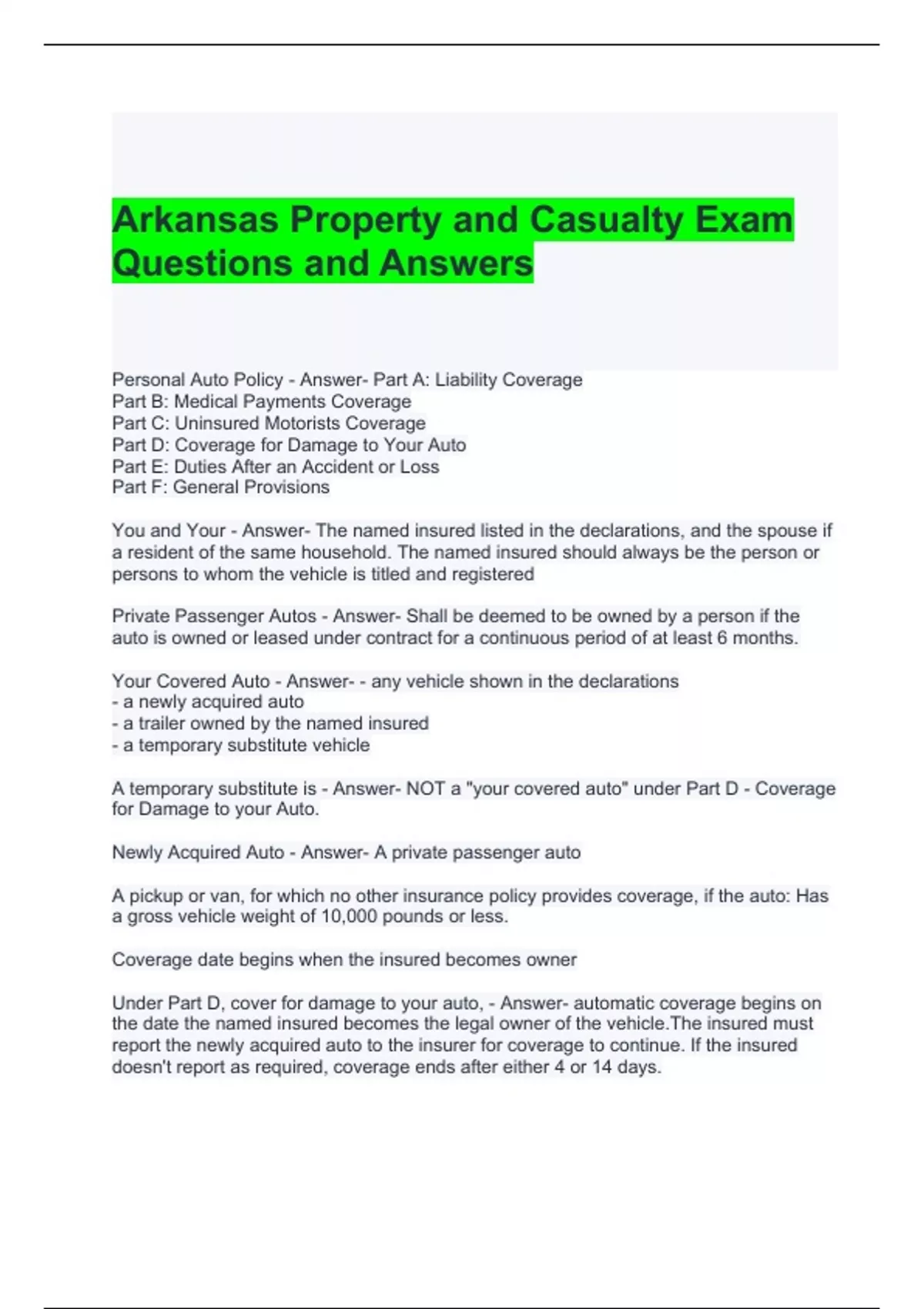 Arkansas Property and Casualty Exam Questions and Answers 2024
