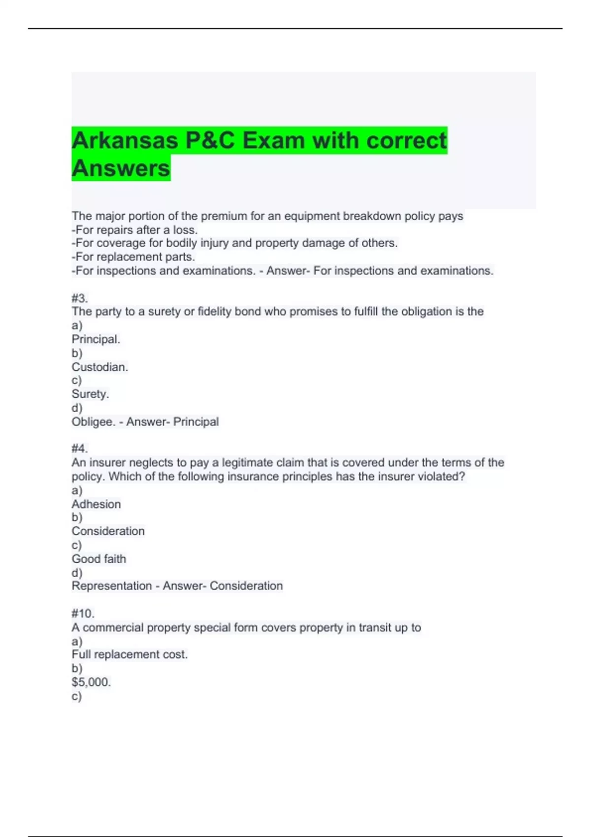 Arkansas P&C Exam with correct Answers