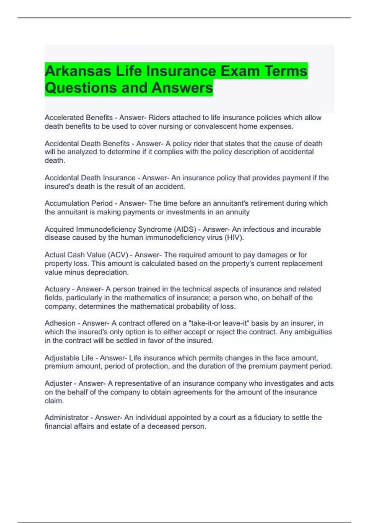 Arkansas Life Insurance Exam Terms Questions and Answers 2024