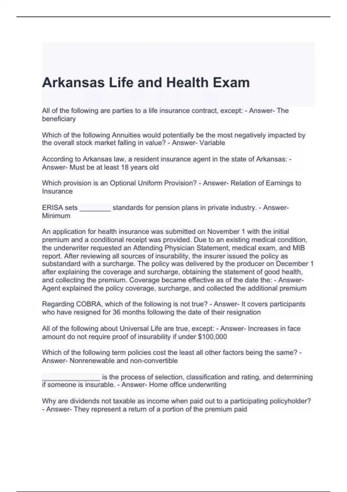 Arkansas Life and Health Exam with Verified Answers