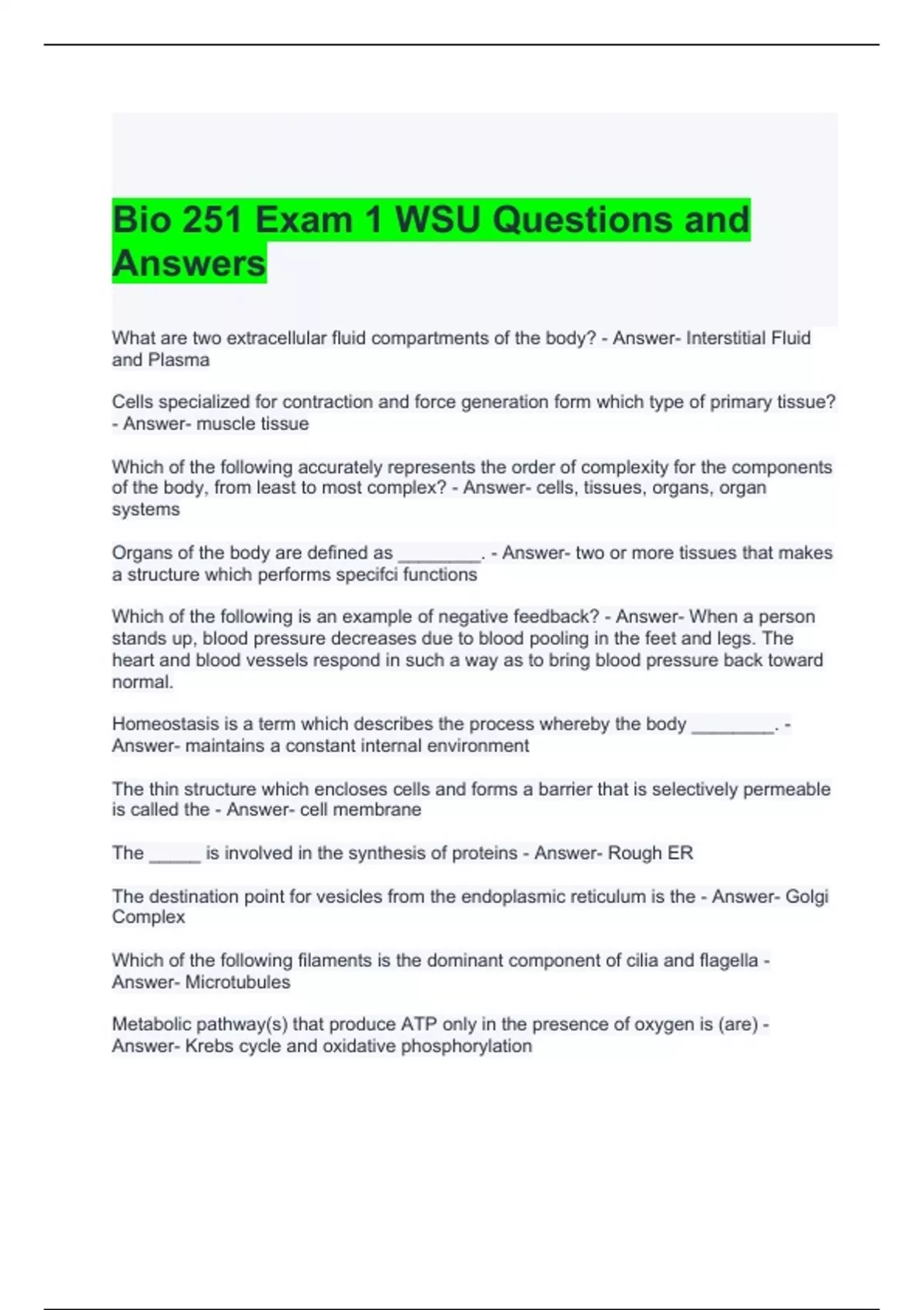 Bio 251 Exam 1 WSU Questions and Answers 2024 - Graded A