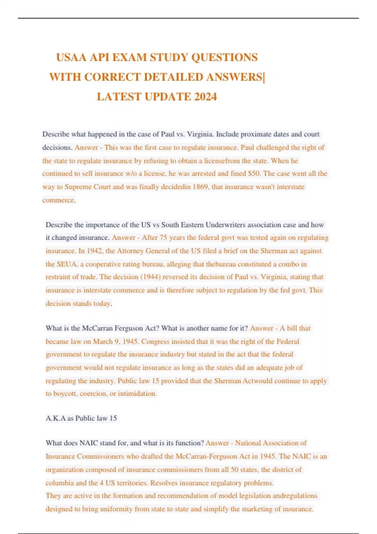 USAA API EXAM STUDY QUESTIONS WITH CORRECT DETAILED ANSWERS| LATEST UPDATE 2024