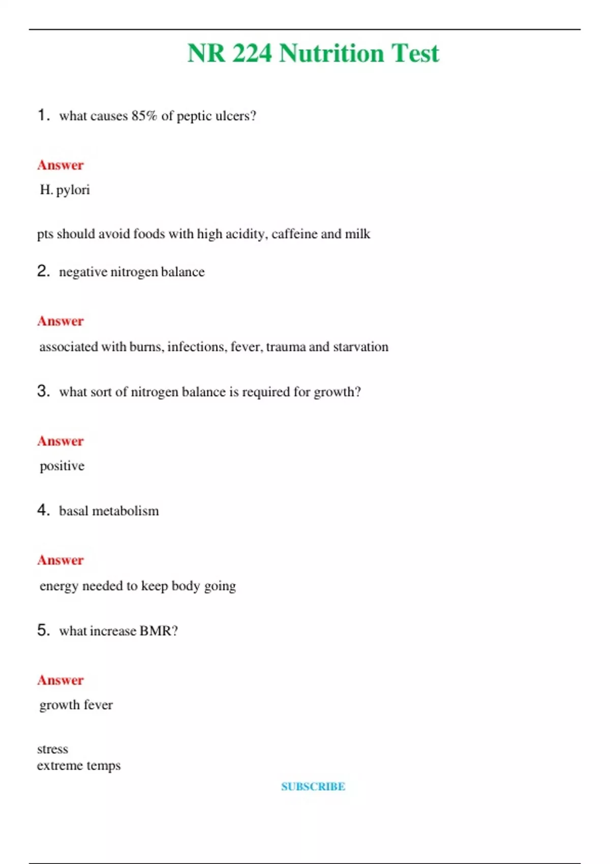 NR 224 (Latest 2024 / 2025) Nutrition Test Questions & Answers with rationales