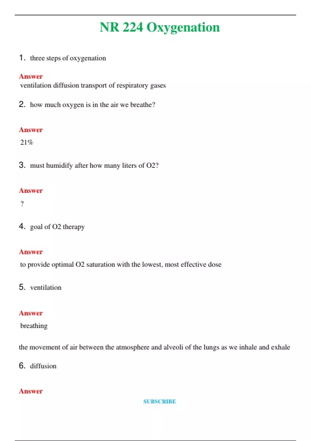 NR 224 (Latest 2024 / 2025) Oxygenation Questions & Answers with rationales