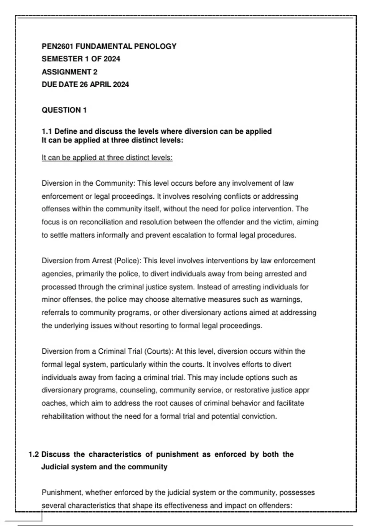 1.2 Discuss the characteristics of punishment as enforced by both the