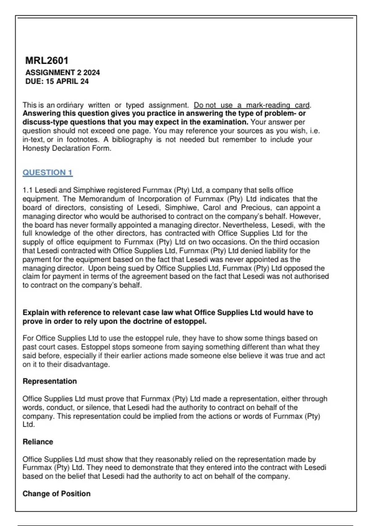 Office Supplies Ltd has relied on Furnmax (Pty) Ltd's representation to their detriment.