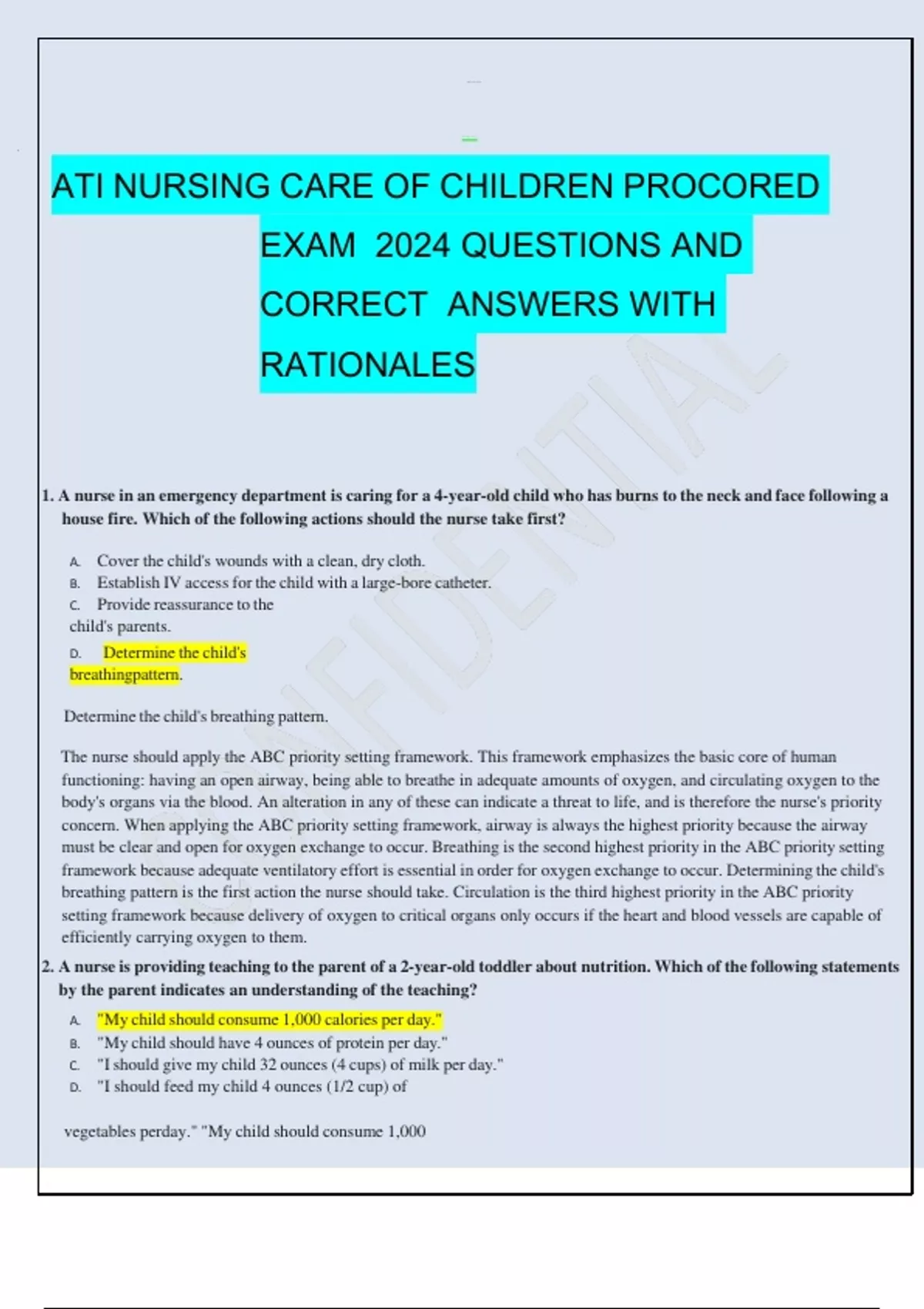 1. A nurse in an emergency department is caring for a 4-year-old child who has burns to the neck and face following a