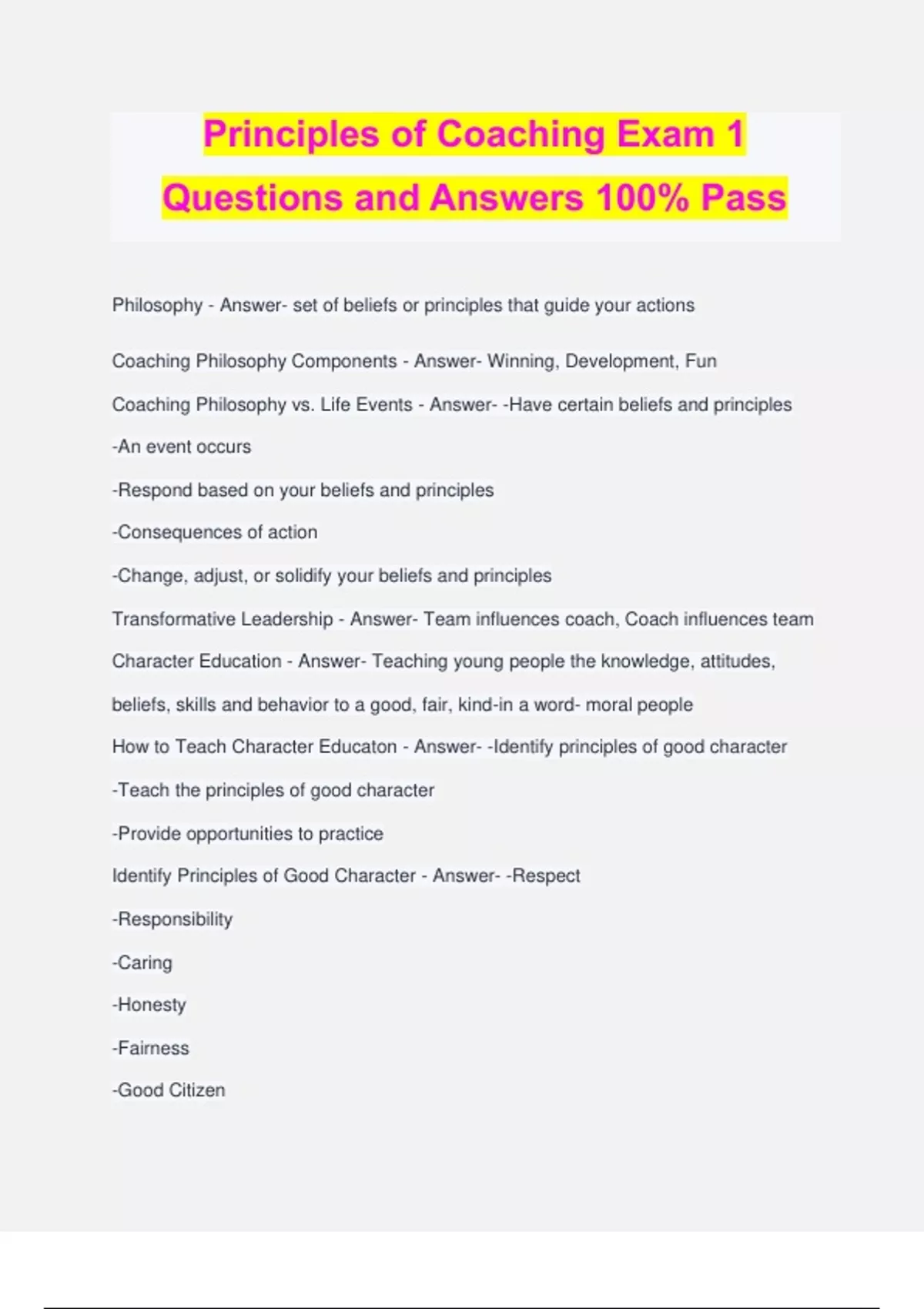 Principles of Coaching Exam 1 Questions and Answers 100% Pass
