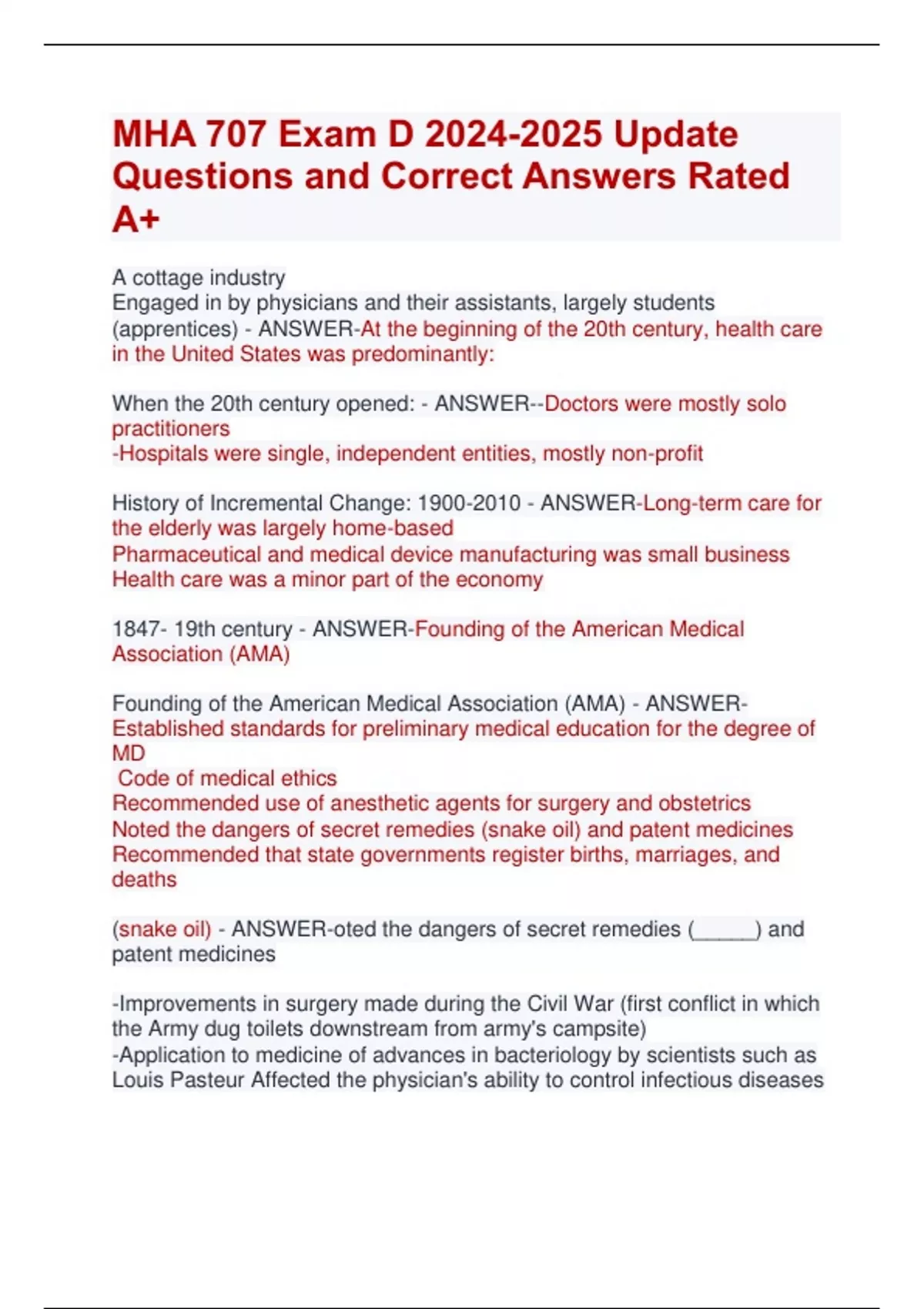 MHA 707 Exam D Update Questions and Correct Answers Rated A+