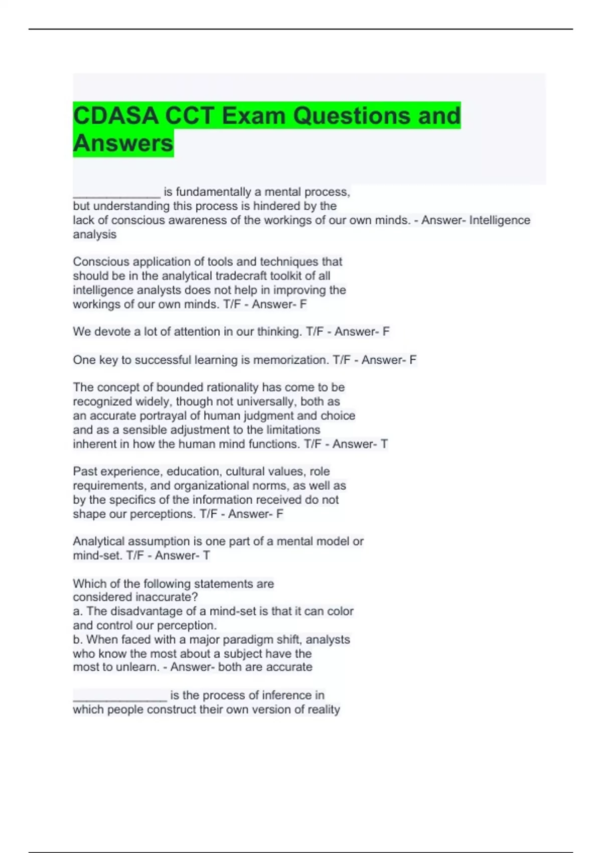 CDASA CCT Exam Questions and Answers 2024 /Graded A