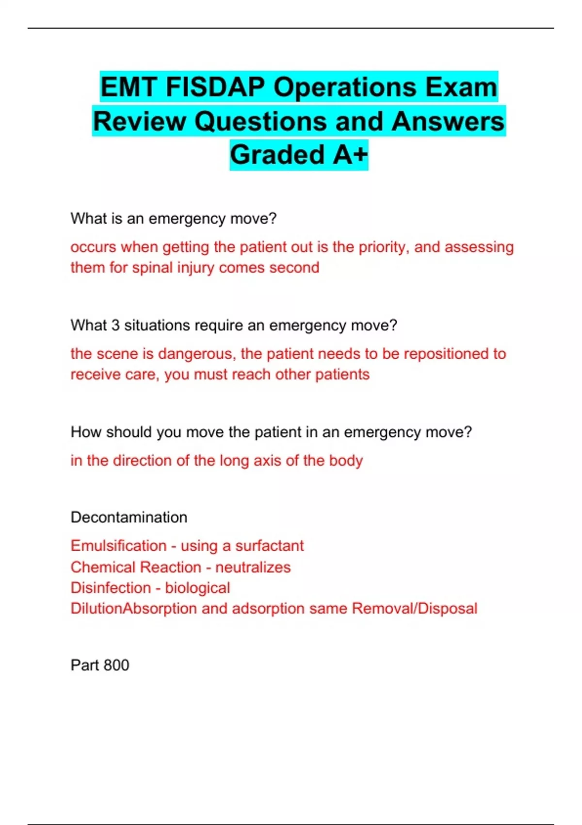 EMT FISDAP Operations Exam Review Questions and Answers Graded A+ EMT FISDAP Operations Exam Review Questions and Answers Graded A+ EMT FISDAP Operations Exam Review Questions and Answers Graded A+