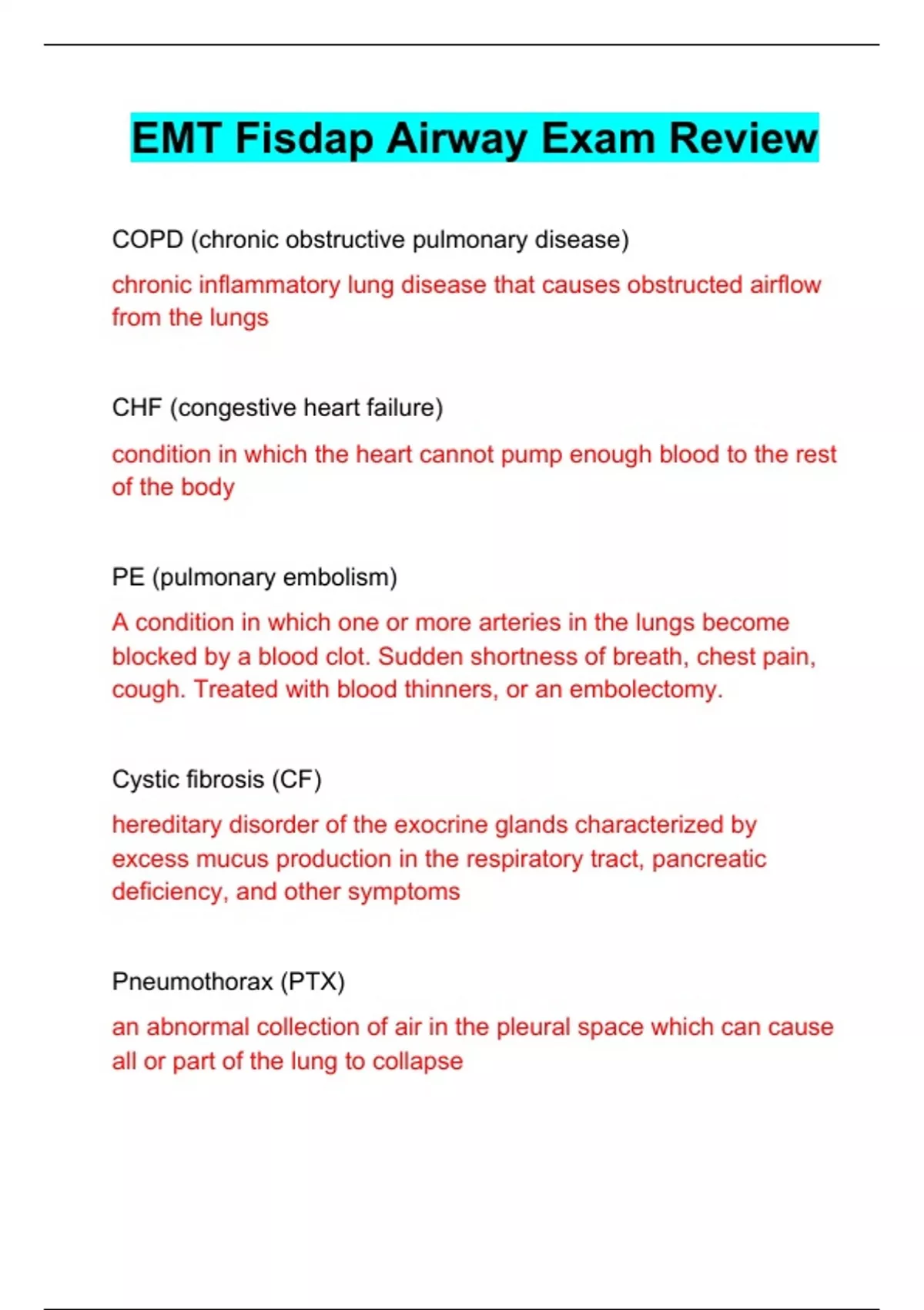 EMT Fisdap Airway Exam Review and Study Guide | Latest 2024 EMT Fisdap Airway Exam Review and Study Guide | Latest 2024 EMT Fisdap Airway Exam Review and Study Guide | Latest 2024