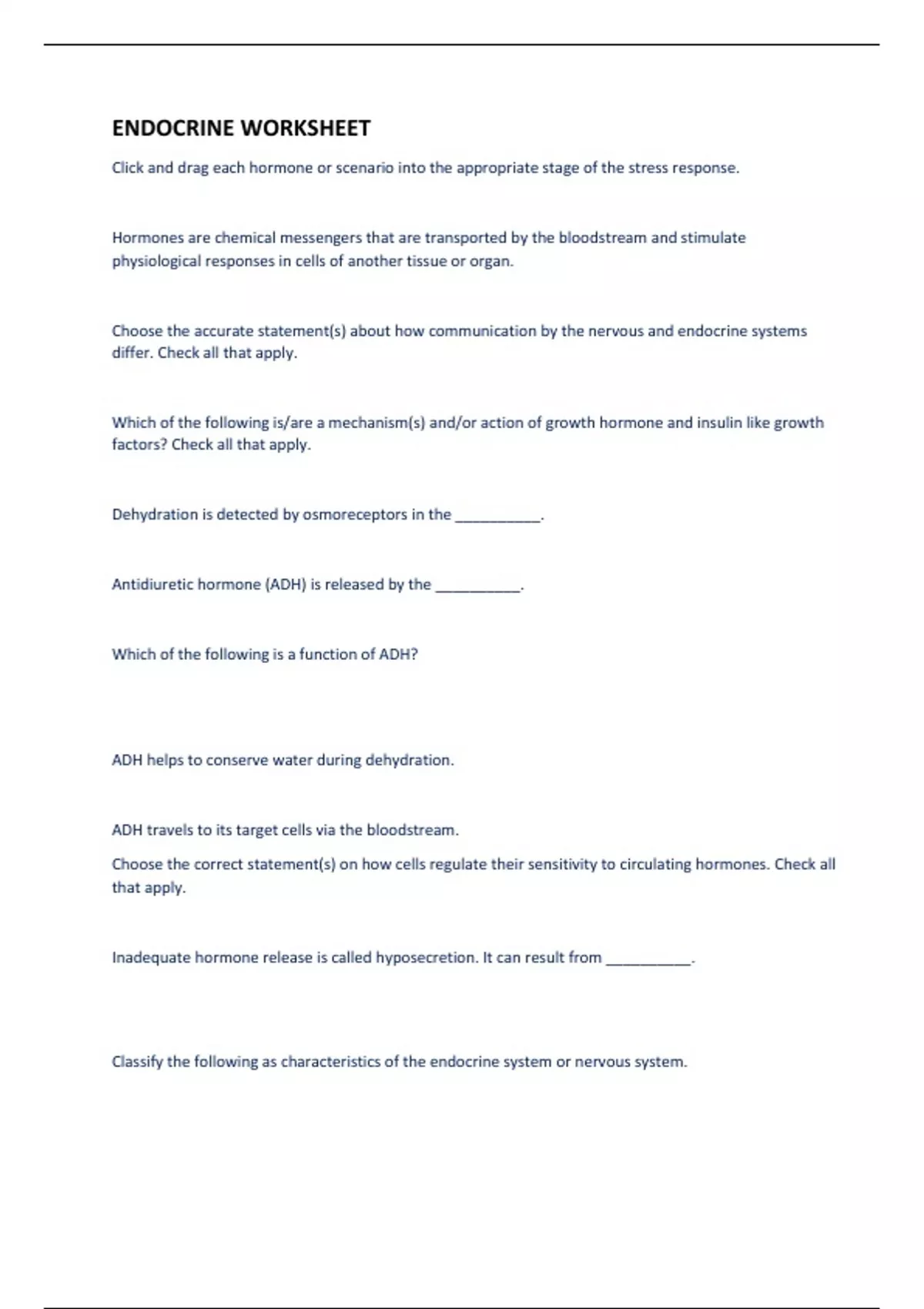 Summary of 7 pages for the course WORKSHEET at WORKSHEET (ENDOCRINE WORKSHEET)