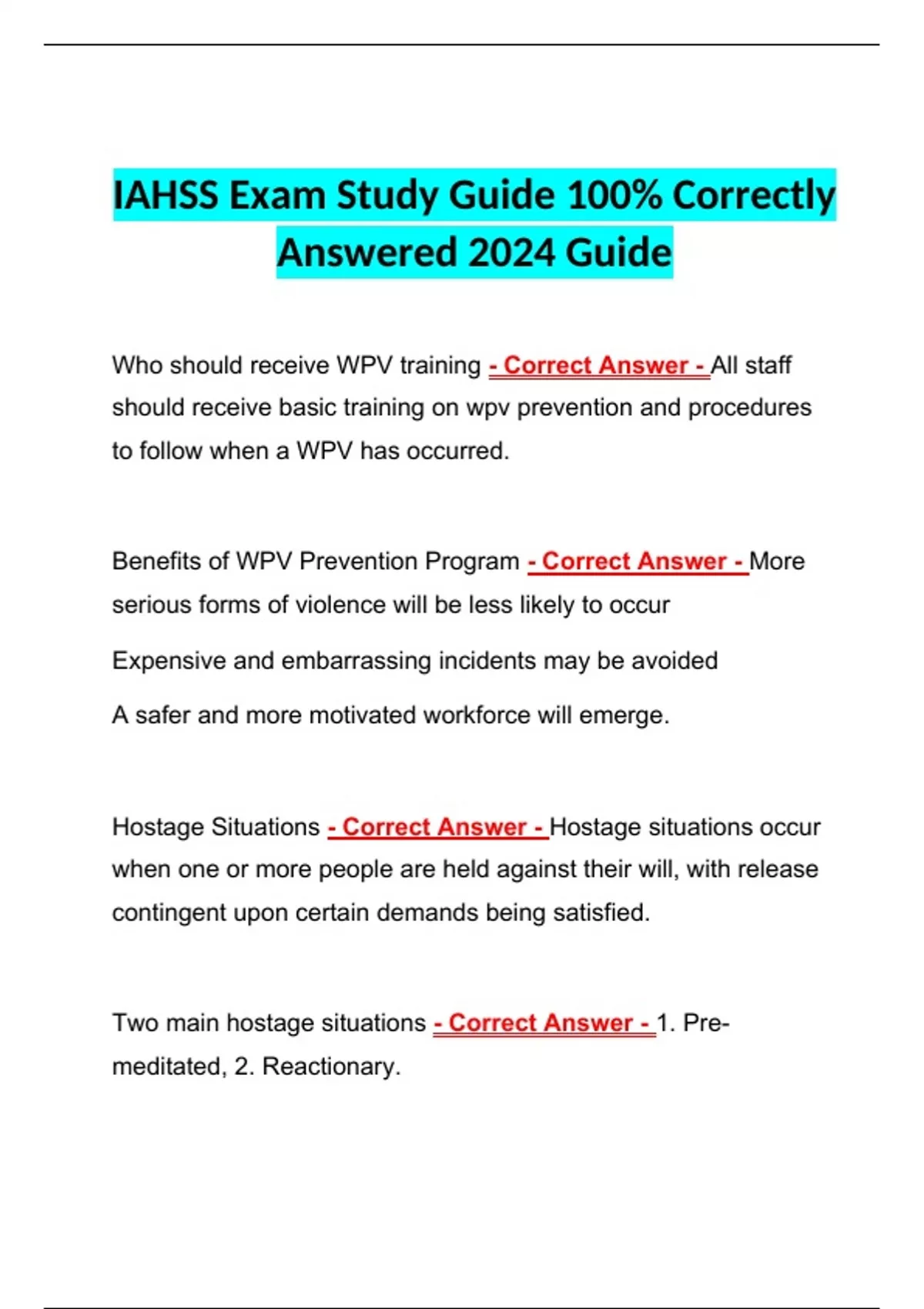 IAHSS Exam Study Guide 100% Correctly Answered 2024 Guide IAHSS Exam Study Guide 100% Correctly Answered 2024 Guide IAHSS Exam Study Guide 100% Correctly Answered 2024 Guide