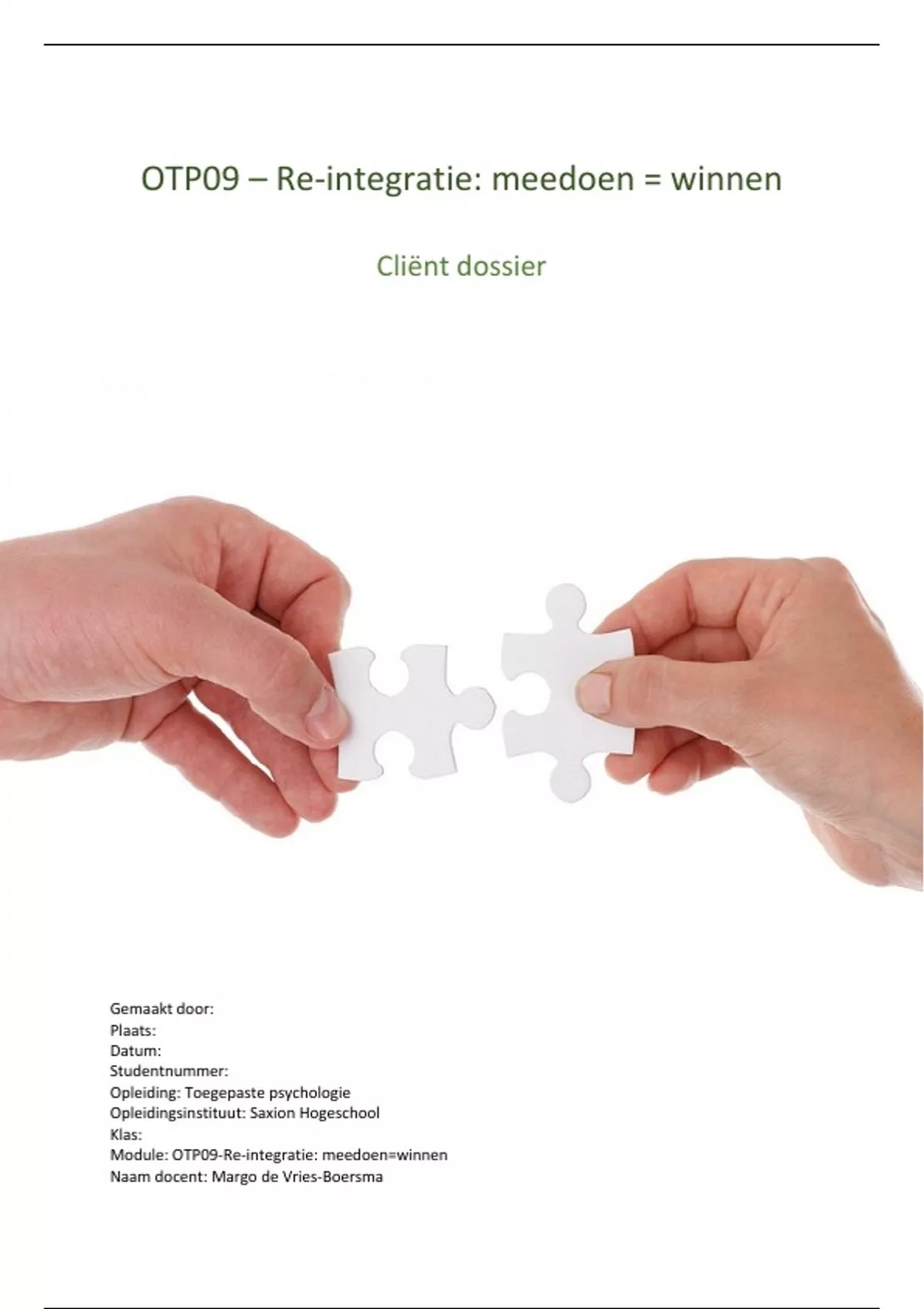 Otp09 - Re-integratie: meedoen = winnen (cijfer 8) - Arbeid- & Organisatiepsychologie