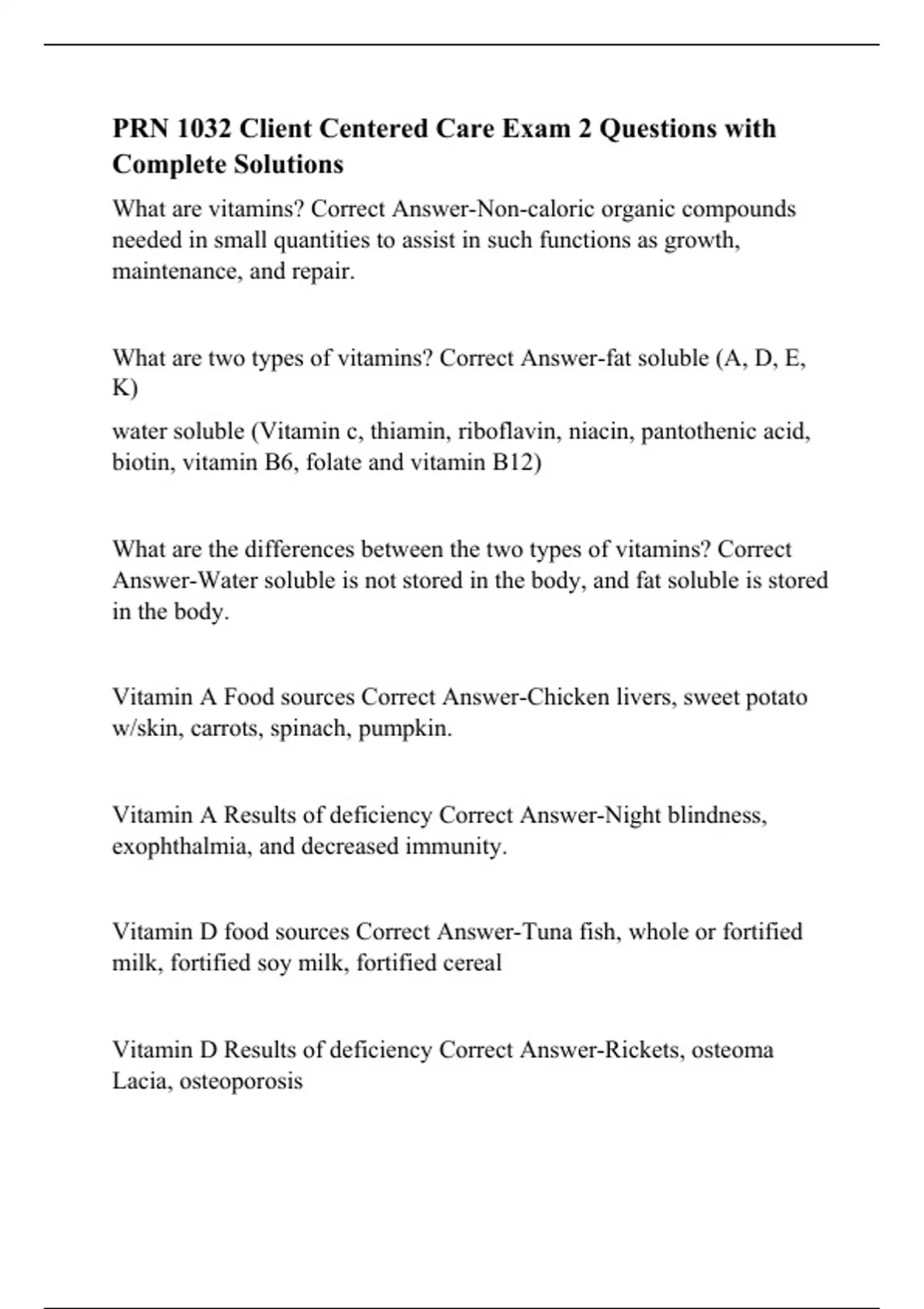 PRN 1032 Client Centered Care Exam 2 Questions with Complete Solutions