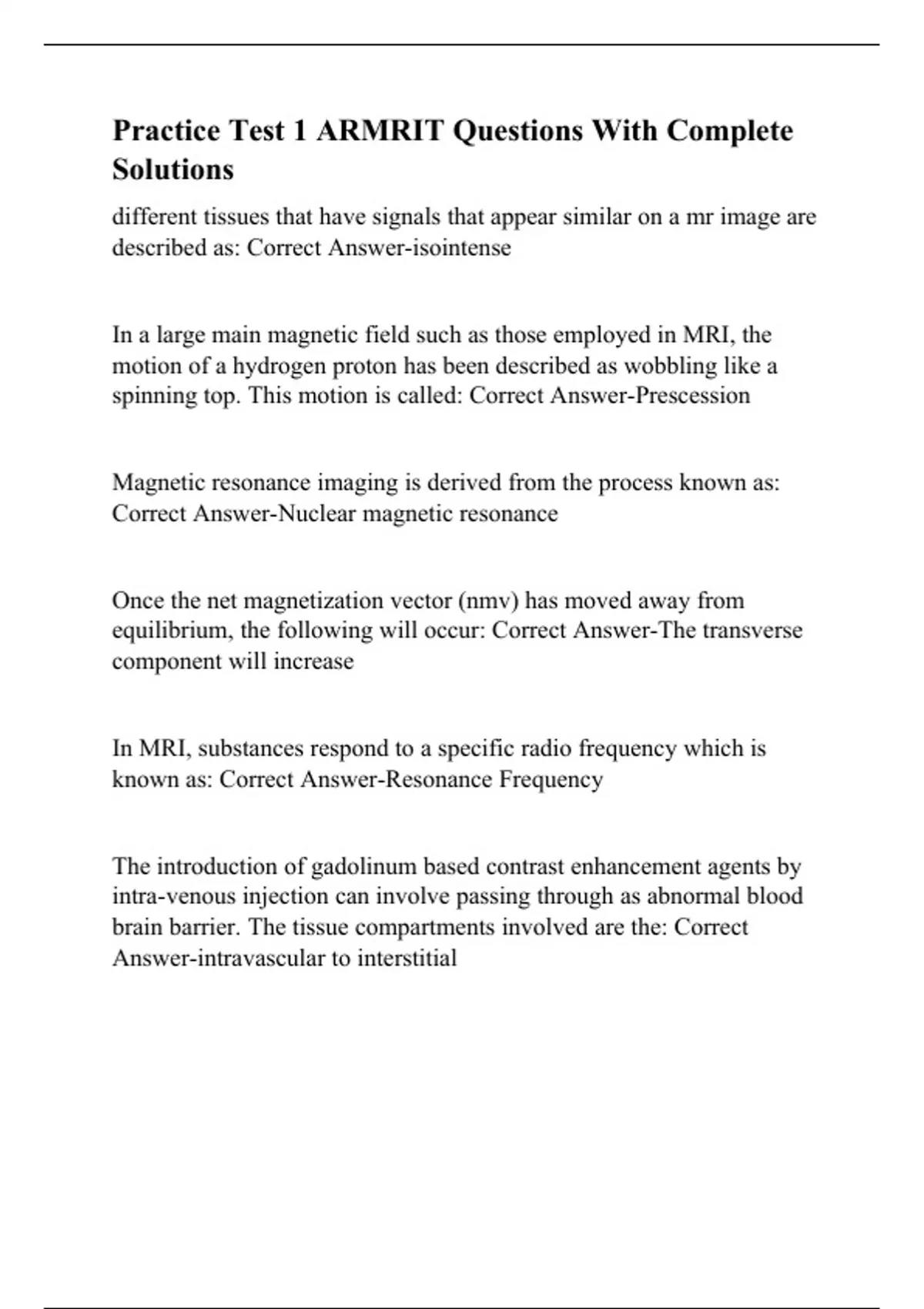 Practice Test 1 ARMRIT Questions With Complete Solutions