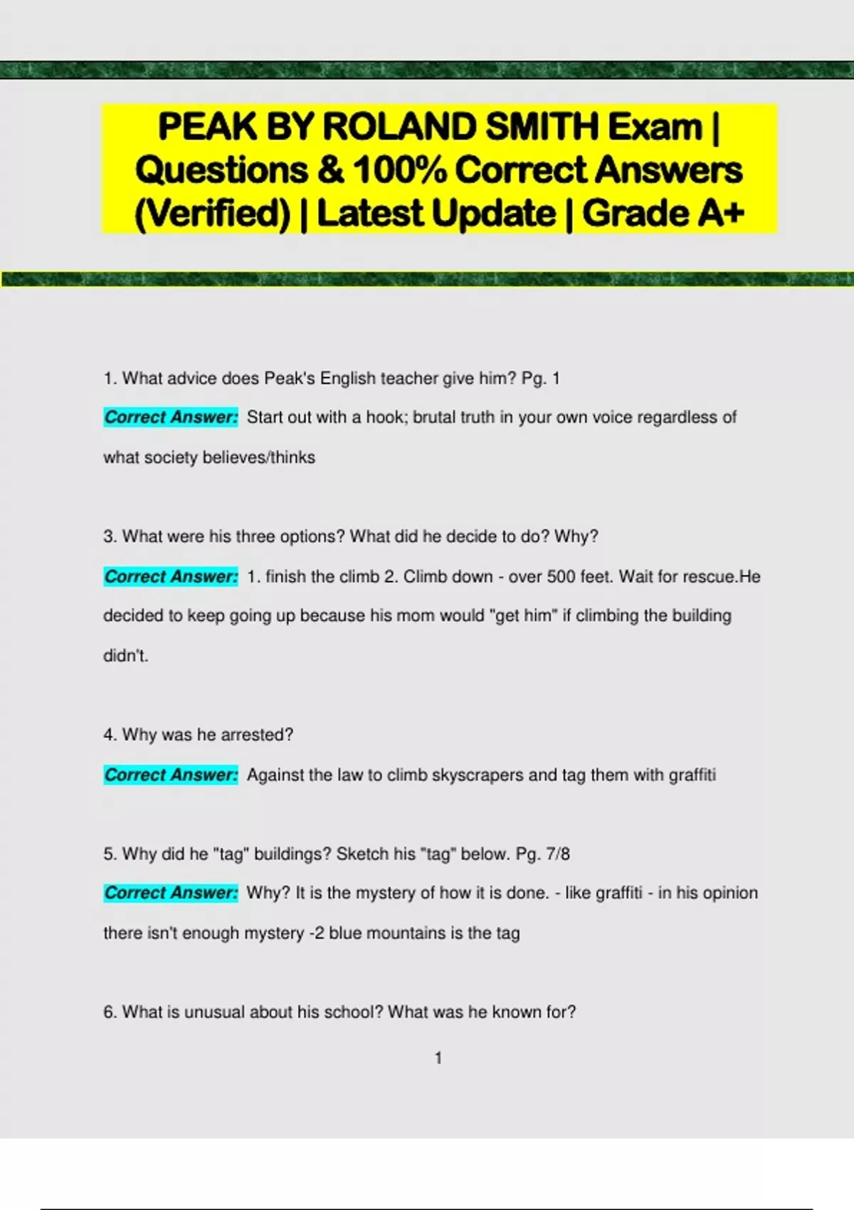 PEAK BY ROLAND SMITH Exam | Questions & 100% Correct Answers (Verified) | Latest Update | Grade A+