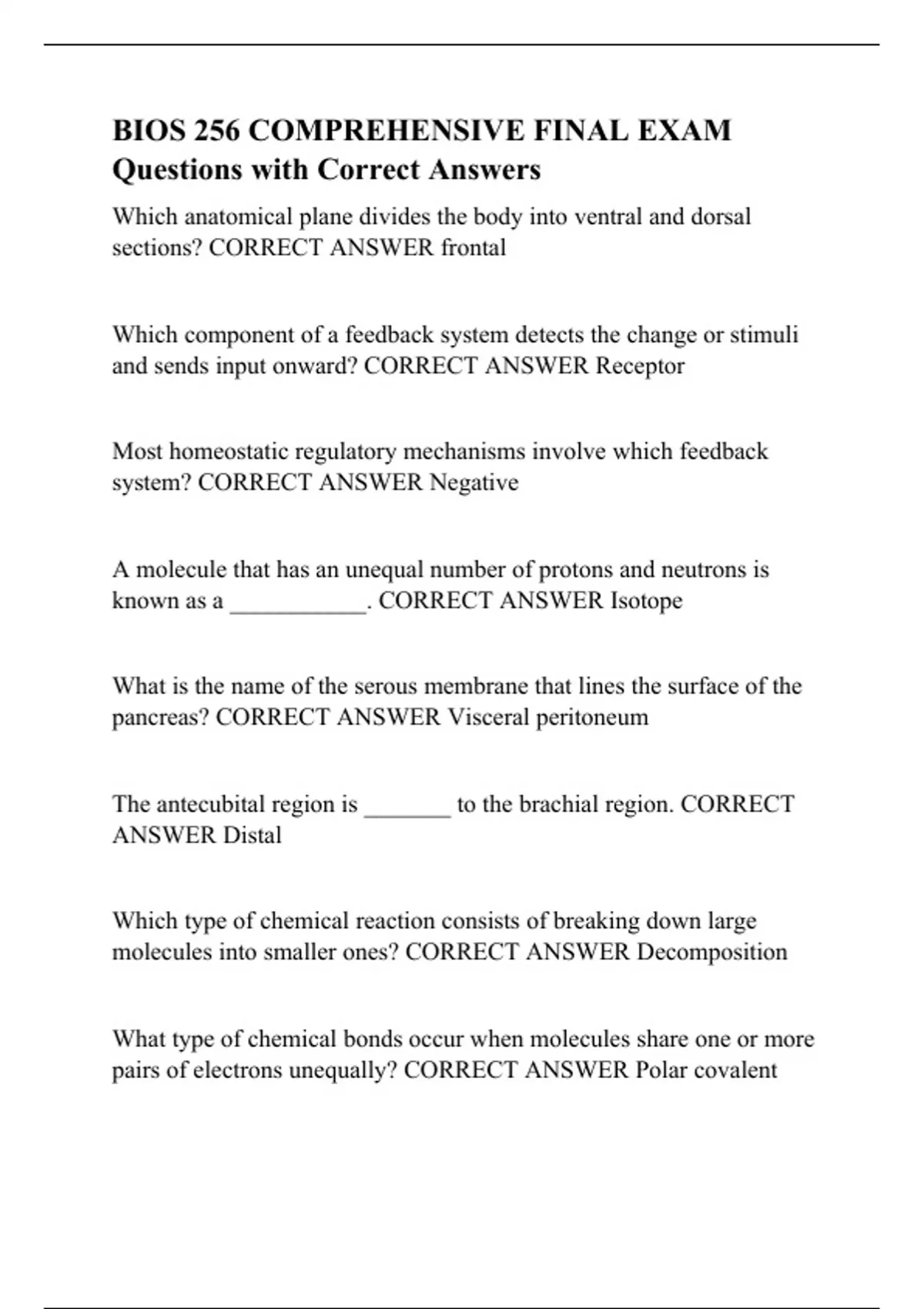 BIOS 256 COMPREHENSIVE FINAL EXAM Questions with Correct Answers