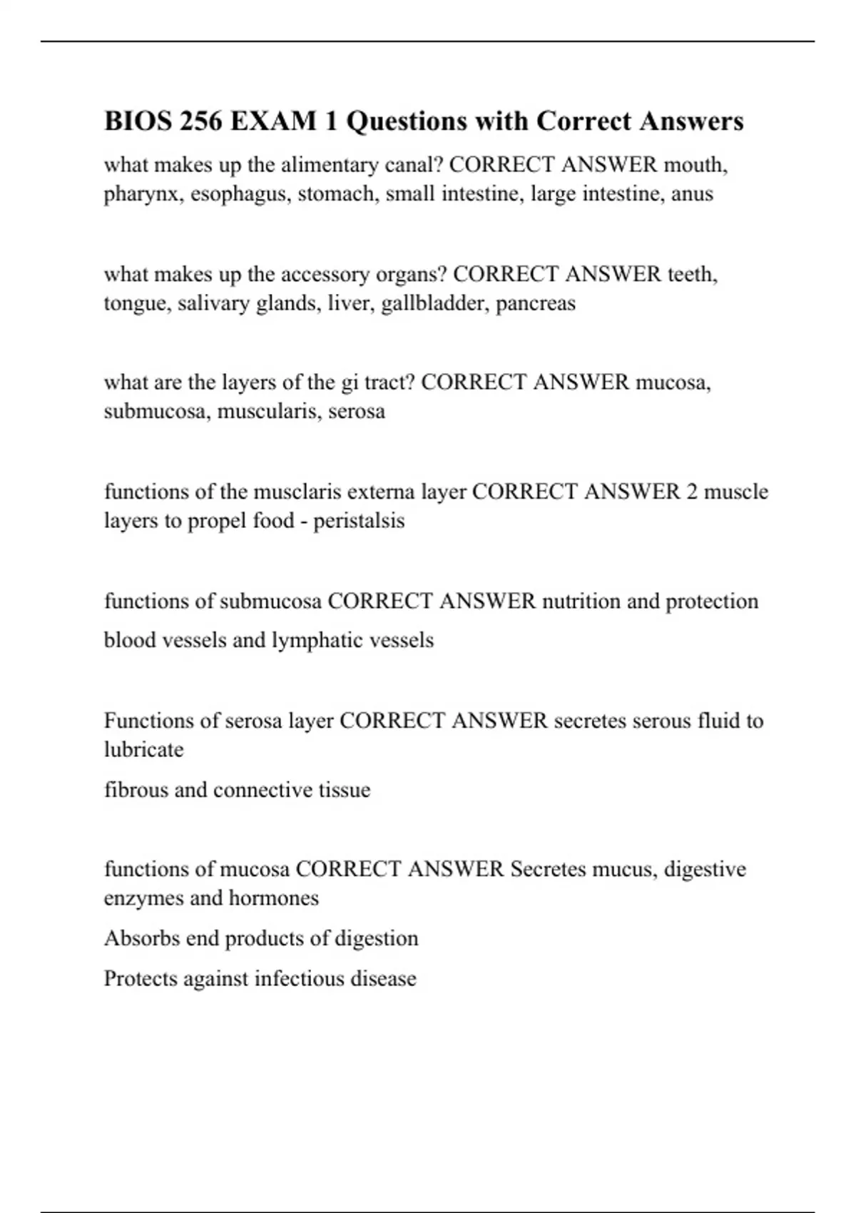 BIOS 256 EXAM 1 Questions with Correct Answers