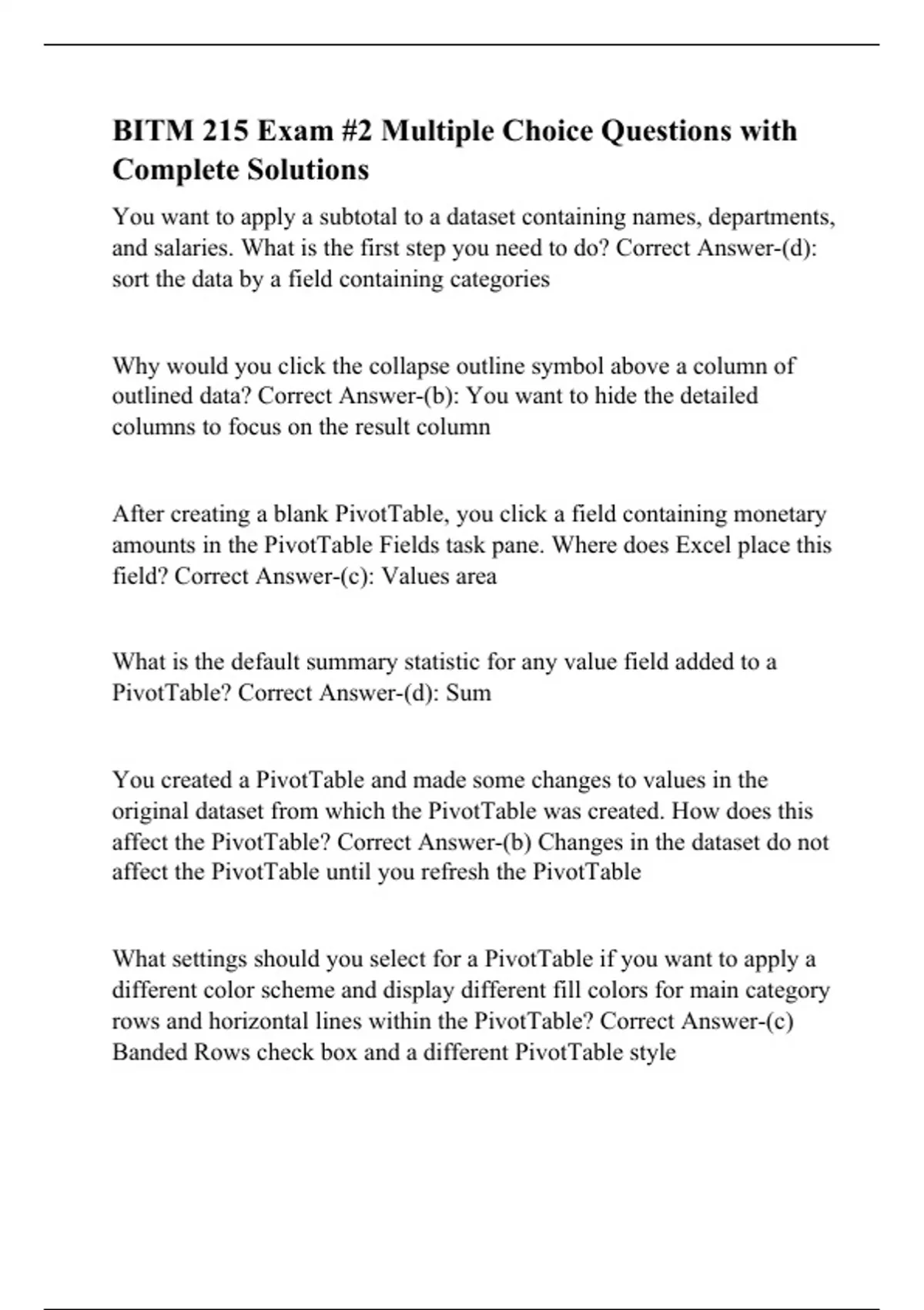 BITM 215 Exam #2 Multiple Choice Questions with Complete Solutions
