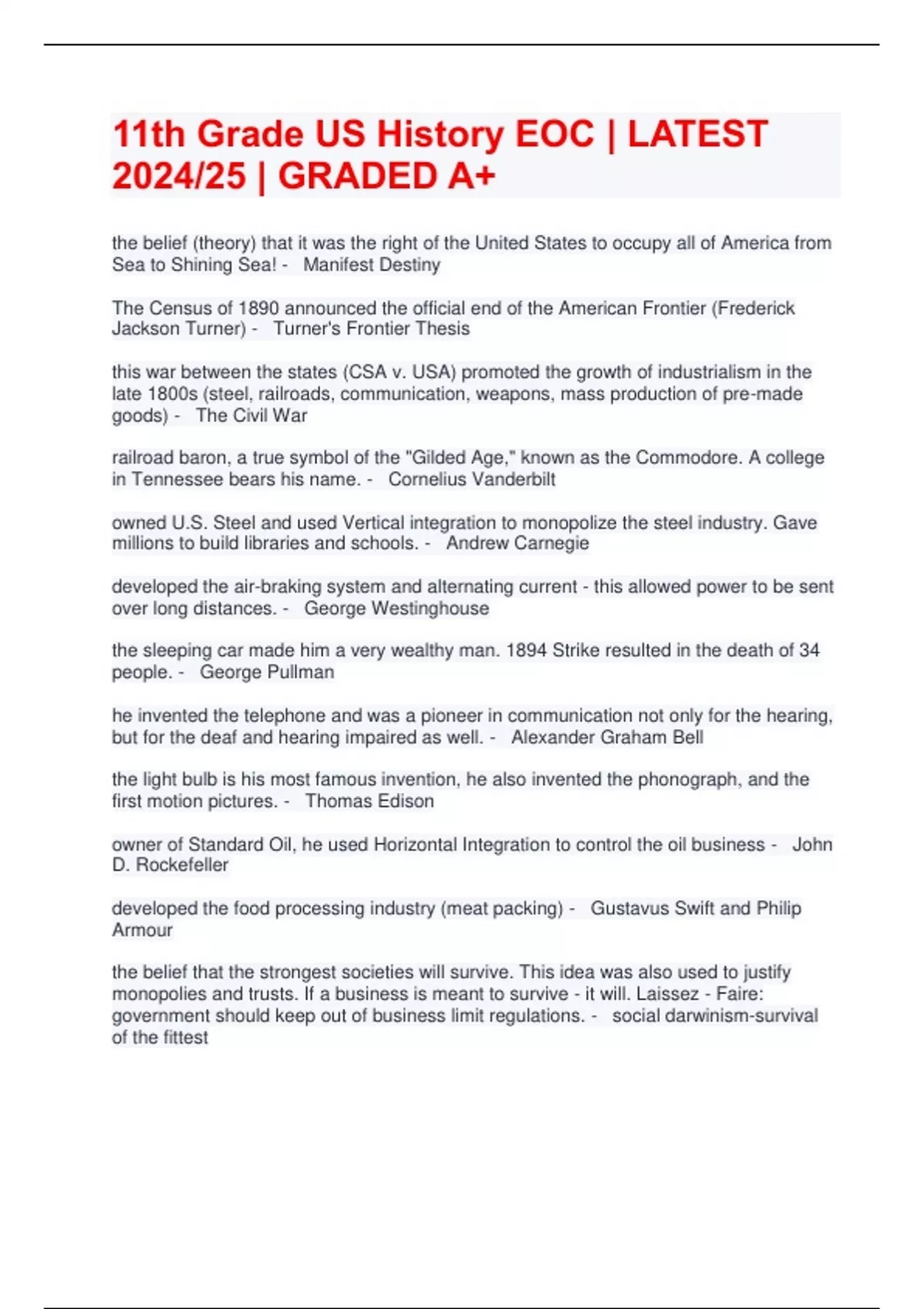 11th Grade US History EOC | LATEST 2024/25 | GRADED A+
