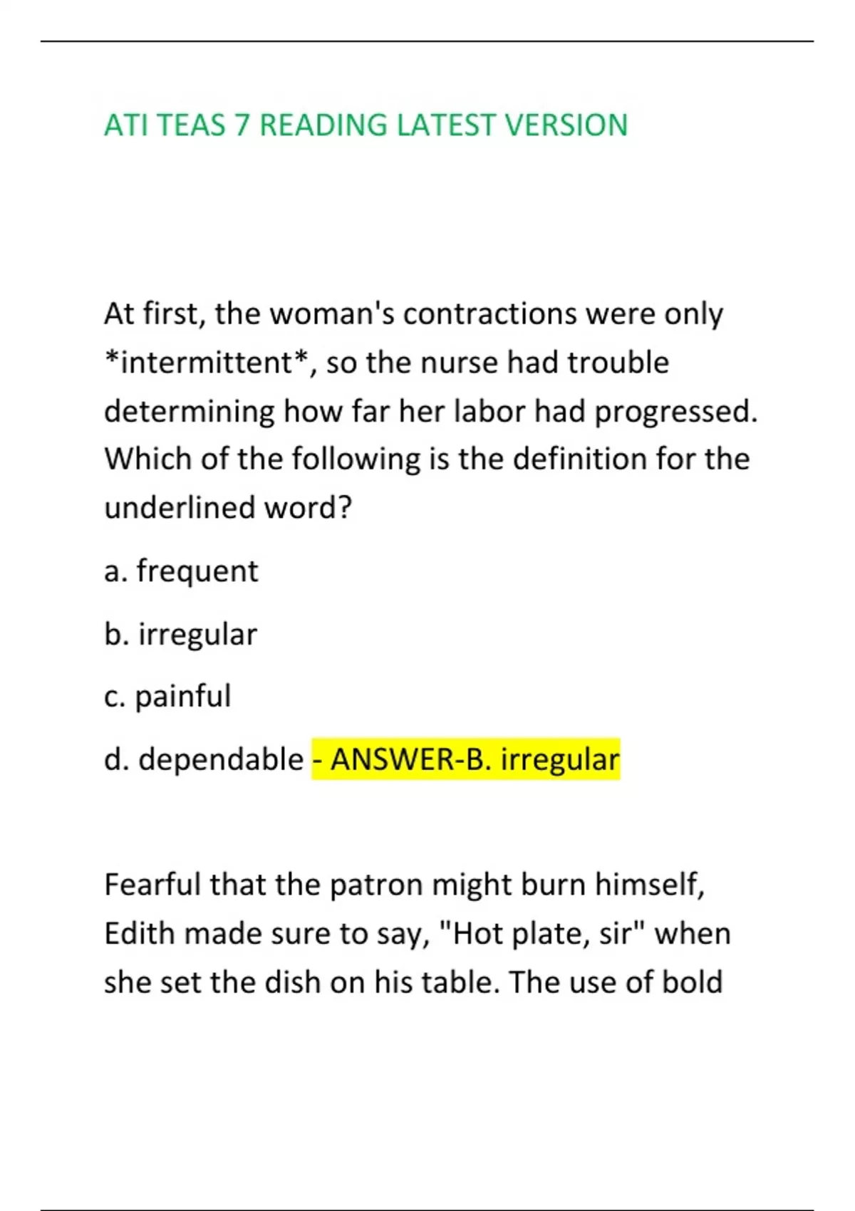 ati teas 7 reading latest version
