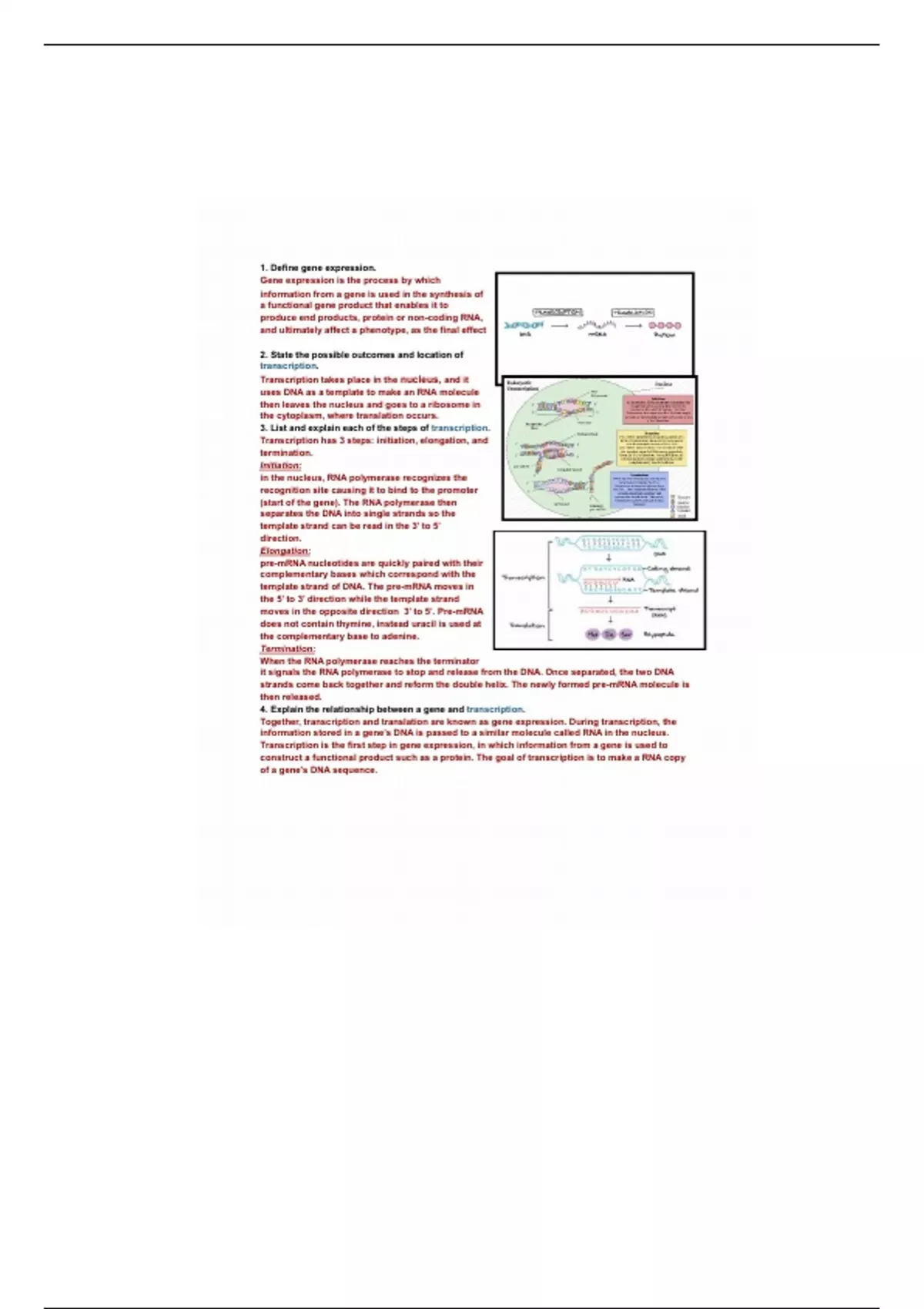 4. Explain the relationship between a gene and transcription.