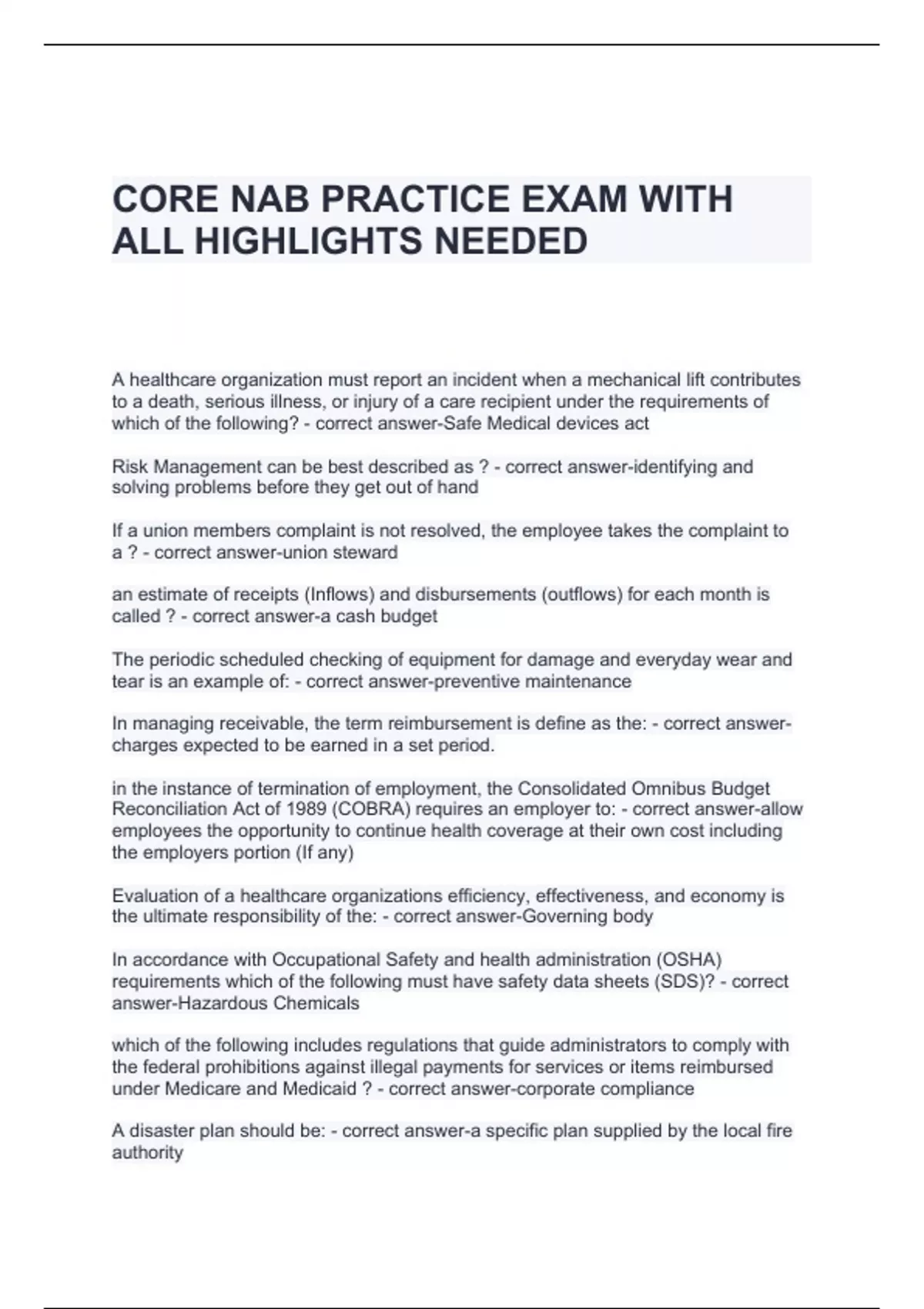 CORE NAB PRACTICE EXAM WITH ALL HIGHLIGHTS NEEDED
