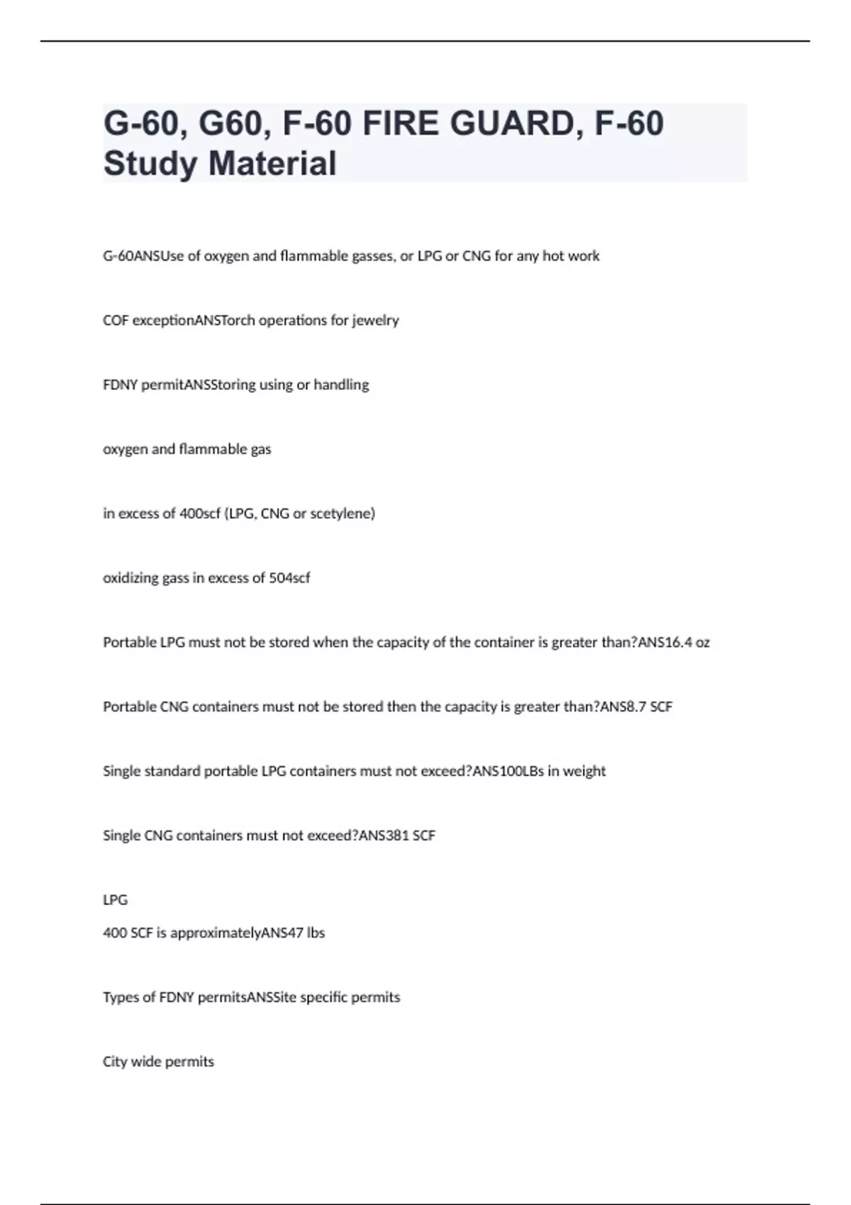 G-60, G60, F-60 FIRE GUARD, F-60 Study Material Exam Questions With Correct Answers 2024 latest version