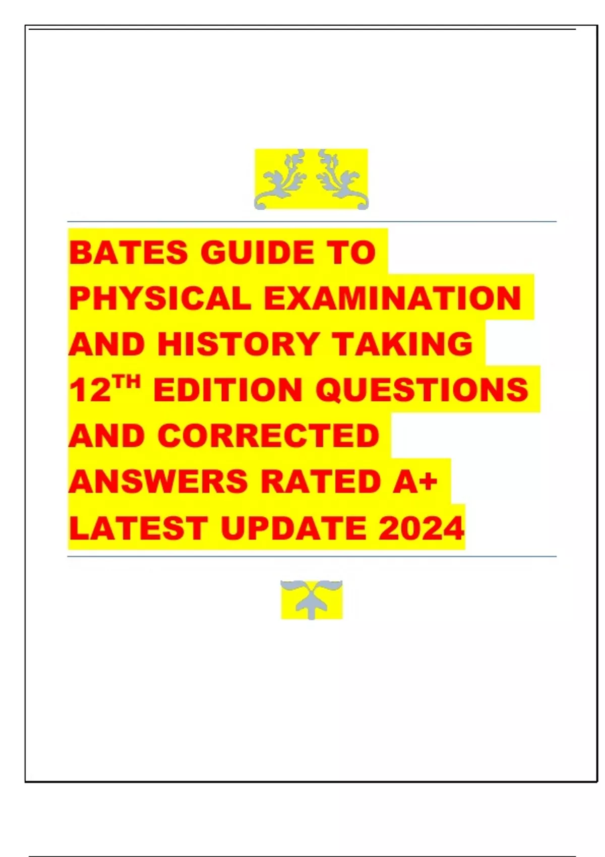 BATES GUIDE TO PHYSICAL EXAMINATION AND HISTORY TAKING 12TH EDITION QUESTIONS AND CORRECTED ANSWERS RATED A+ LATEST UPDATE 2024