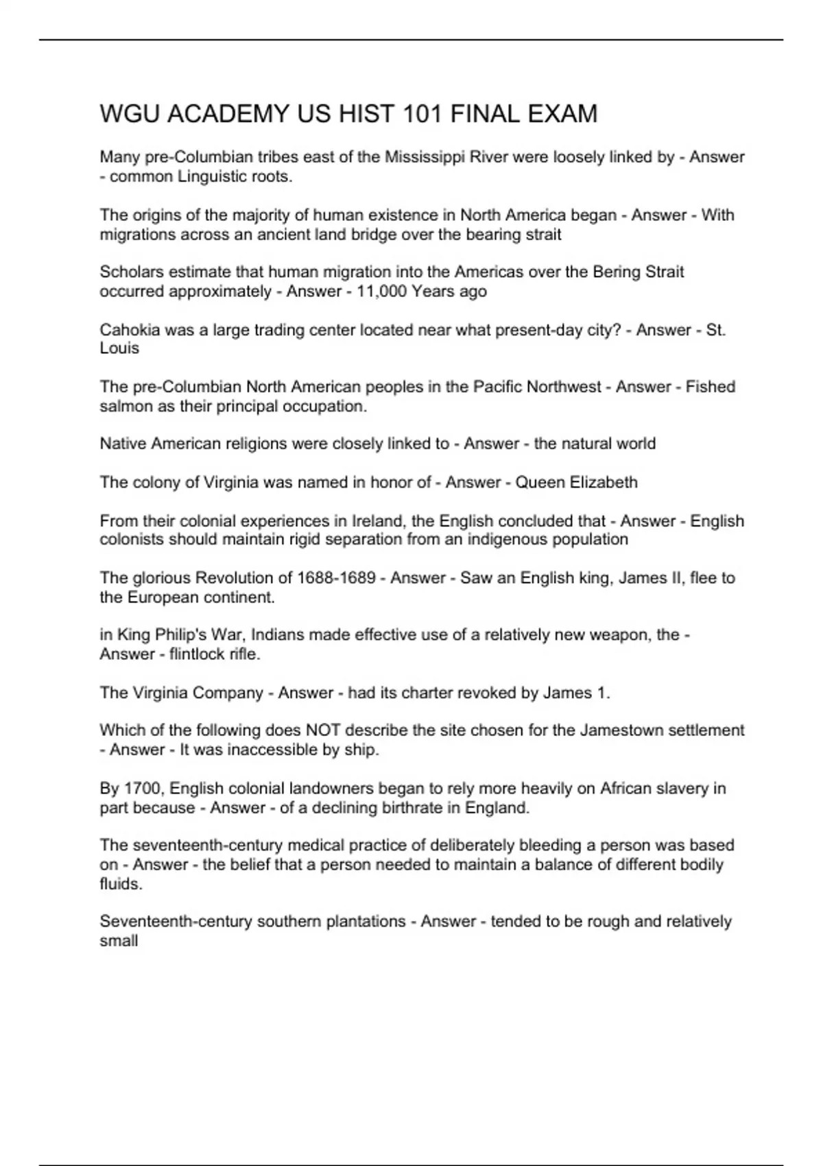 WGU Academy US HIST 101 Final Exam