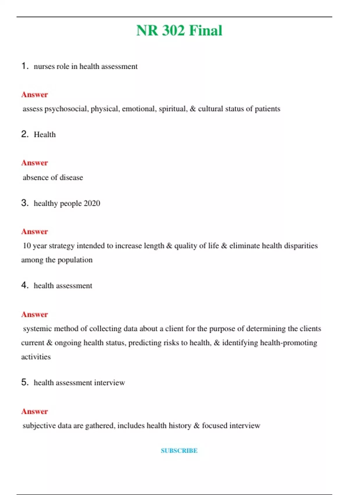 NR 302 (Latest 2024 / 2025) Final Questions & Answers with rationales