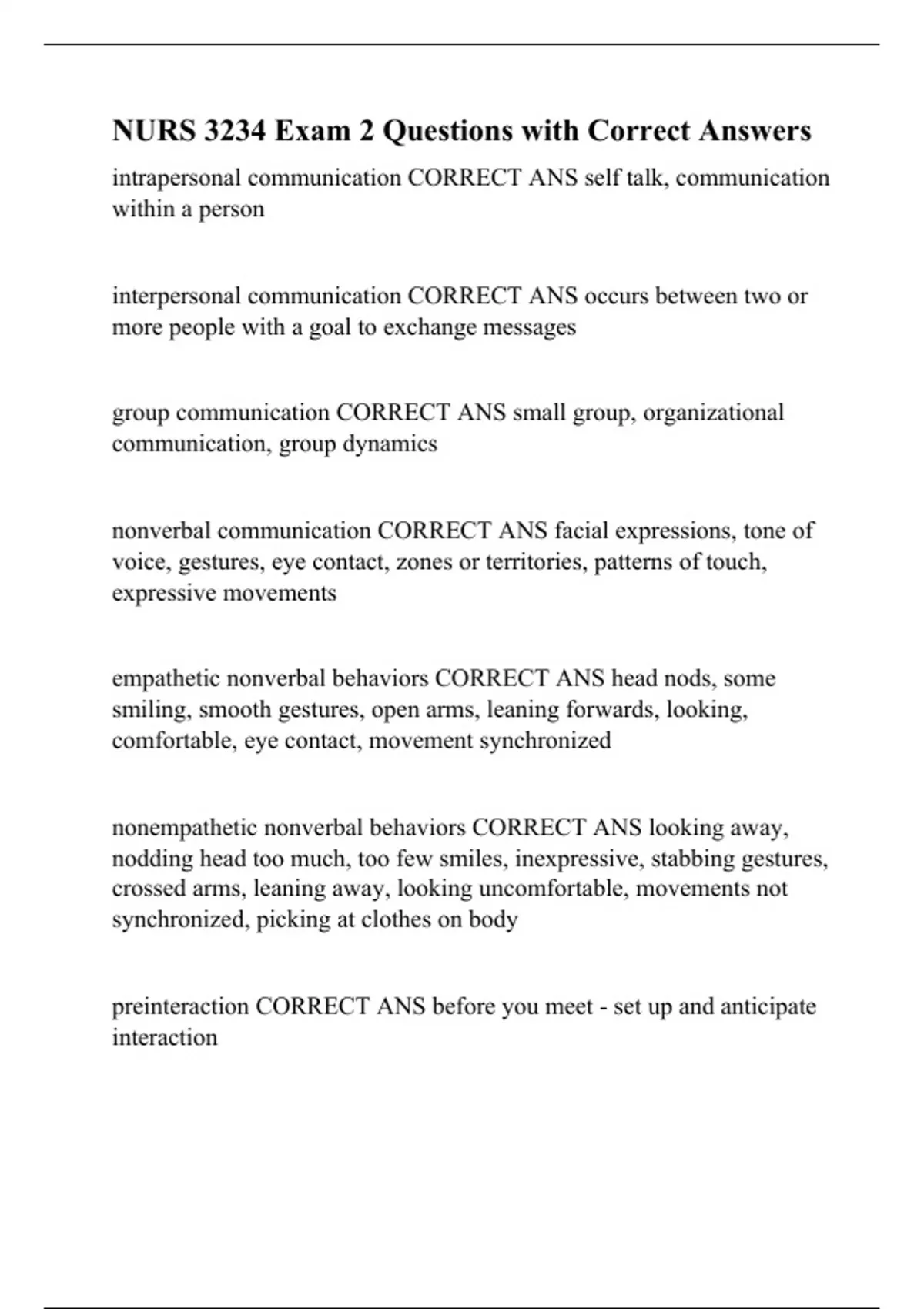 NURS 3234 Exam 2 Questions with Correct Answer1